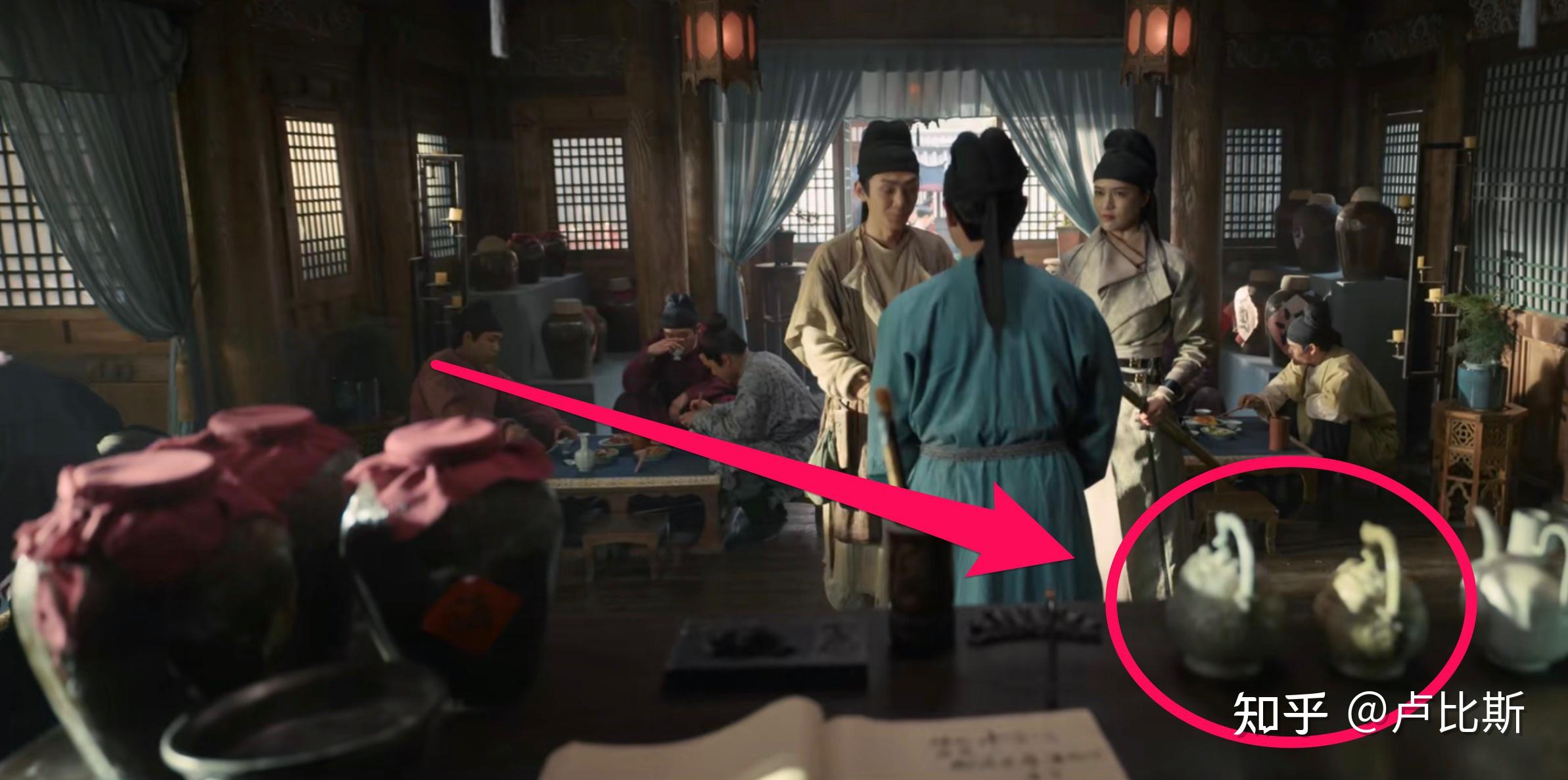 【三十七、春荣酒店的“酒壶”是国宝级文物!】第33集,春荣酒店里私藏伏火雷霆的引爆点,白檀等逃到的时候,春荣酒店的柜台上摆着两个酒壶,那两个酒壶是有原型的,其原型是陕西汗青博物馆中18件国宝级文物之一,我们先来看看剧中截图: