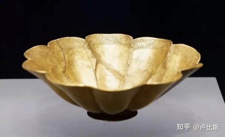 当然,那个工具我没看过原件,不敢判定,我小我觉得它是一件铜镀金的碗,而不是地道金碗,因为看上去很硬。但是那个工具和剧中的阿谁莲花瓣的瓷器器型十分类似。