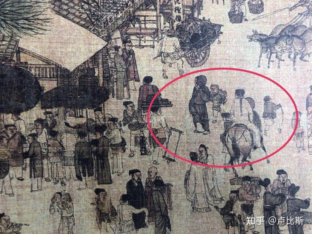 在《清明上河图》临近卷尾的平话处旁有一个穷酸文人带着带着书童上街,路到一个骑马的官人,那位官人带着一个护卫和马夫,像是失势者。官人正想侧身和穷酸文人打号召,无法文人以扇遮面,意思是,对不起您嘞,爷今儿不伺候哈哈。挺好。