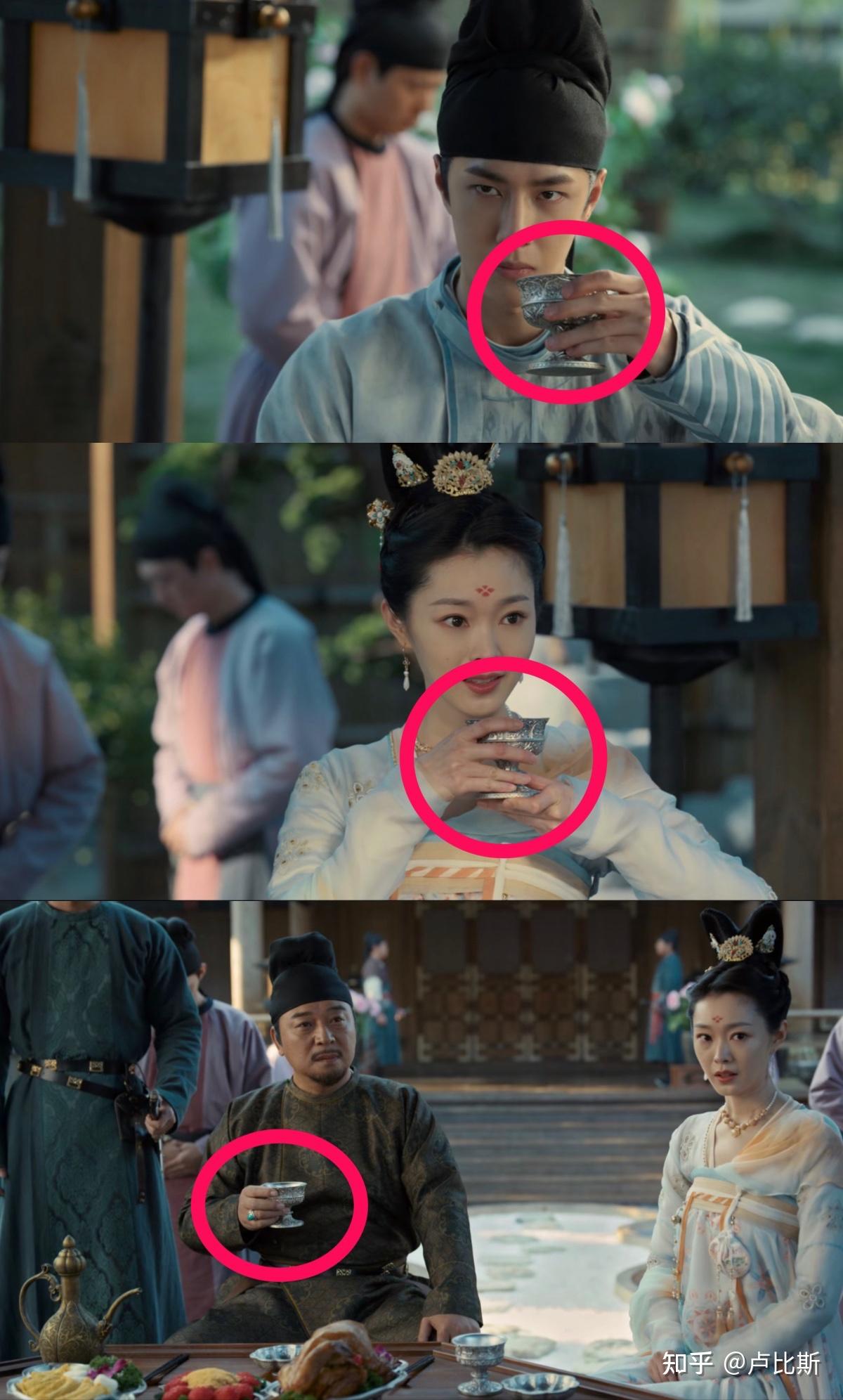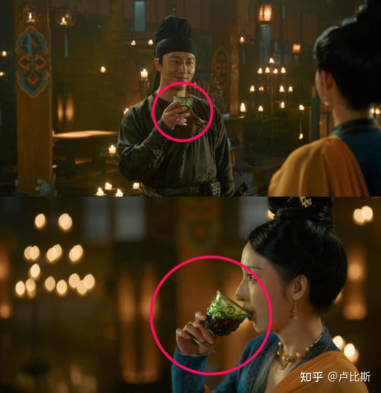 【十、王一博和宋轶回门时喝酒的酒杯是件宝物!】第7集,王一博和宋轶(百里和七娘)回娘家时和巽山公喝酒,桌上的酒杯一下就蹦到了我眼里,它不是一件通俗的工具,是有汗青原型的。