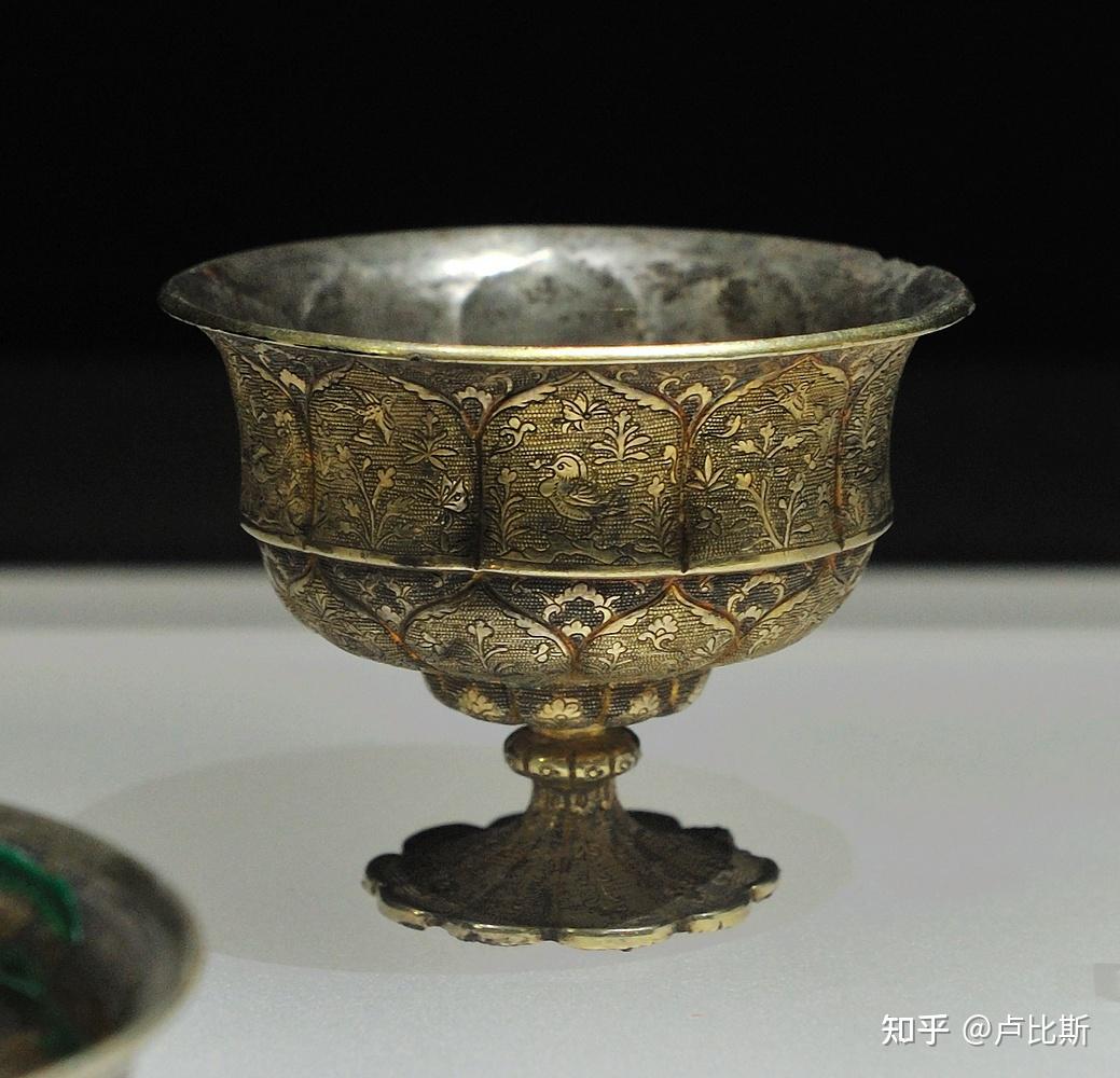 1.“鎏金银杯”——申明该杯的胎底量地是纯银的,上图中有金黄色的原因是因为在银造胎底之上镀了一层金,所以叫“鎏金银杯”;