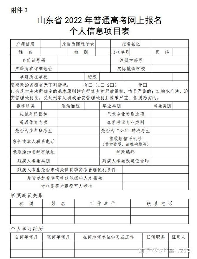 申明 1:2022年高考报名文件附件2中已经对需填报的小我信息停止申明,考生在网上填写前可先下载填写附件2,并留意查看留意事项!