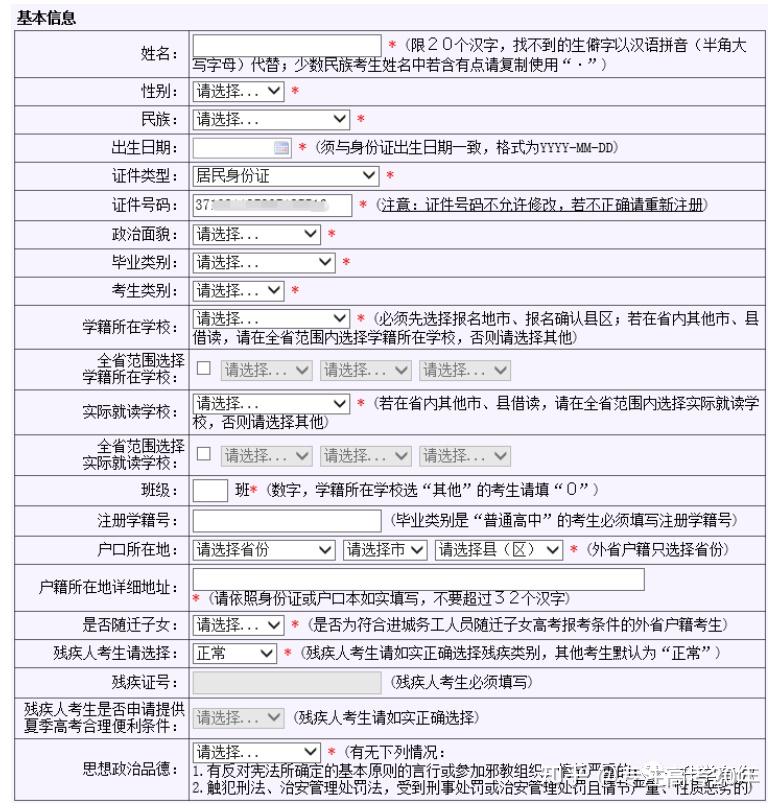 申明3:注册学籍号次要用于对接我省基教部分供给的《通俗高中学生综合本质评价表》,注册学籍号应全数是数字,中职结业生或外省学籍结业生可不填写或仅填写数字。