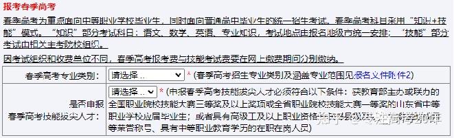 考生报考高职(专科)零丁测验招生需选择春季高考报名。2023年高职(专科)零丁测验招生面向我省中等职业学校应届结业生和社会人员开展,通俗高中应届结业生不得报考。考生还需参与春季高考同一测验招生专业技能测试,因而考生需选择春季高考报名。