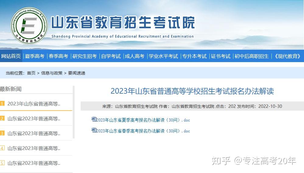 山东省招考院发布了《关于做好山东省2023年通俗高档学校招生测验报名工做的通知》。高考报名自2022年11月9日起头停止。2023年高考报名分为网上填报信息、网上资格审核、网上确认并缴费等3个阶段。2023年高考外语听力测验于2023年1月8日上午停止。