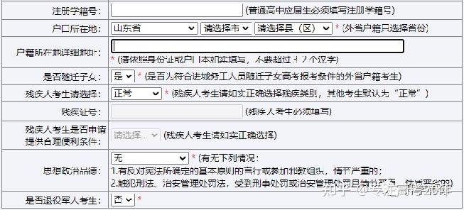 申明6:若考生报考夏日高考、户籍选择非山东省且能否随迁子女选择“否”。