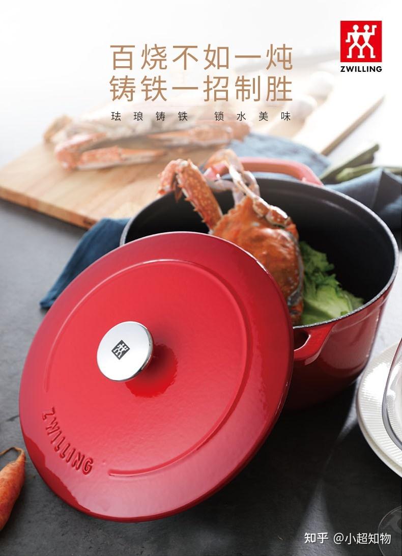 双立人(ZWILLING)红色珐琅铸铁锅,它的包拆厚实,它有手感,炖肉甘旨又营养,它还能放在烤箱里利用,它的颜色平均,做工扎实,大品牌,值得相信!