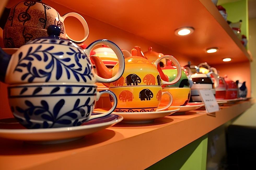 比起杯子和瓷娃娃,我更喜好他们卖的小茶壶,款式和图案都很心爱,我买了都没舍得送人……