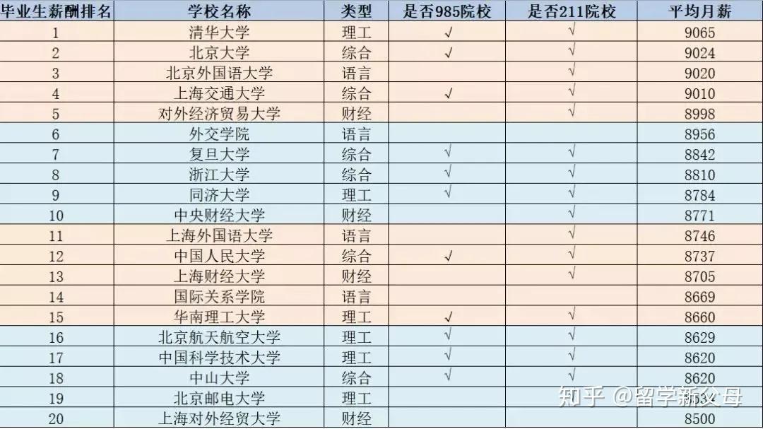 2019届中国高校结业生薪酬院校排行榜