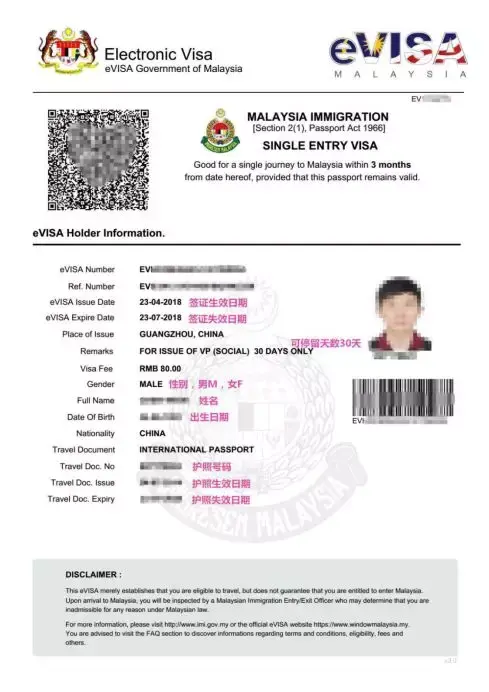 马来西亚电子签证——eVISA,关于方案停留时间不超越30日的伴侣,可选择申请电子签证。