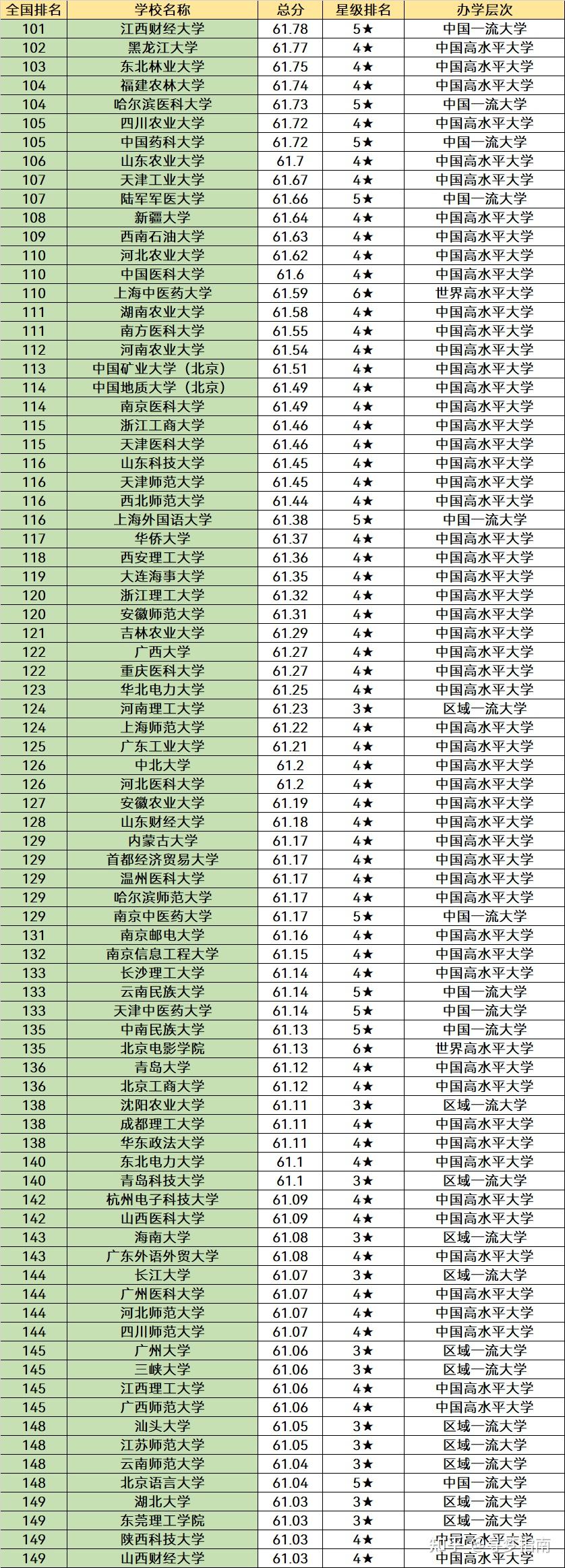 上图整理于校友会中国大学排名,名单是校友会大学排名前200强,详细院校、星级排名和办学条理散布情况。