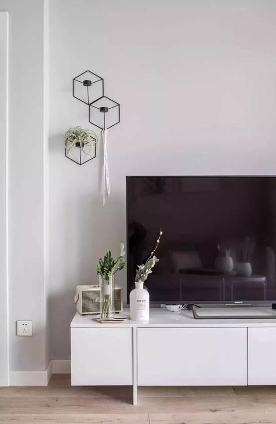 电视布景墙是高雅的浅灰色,没有过多的粉饰。但是小摆件仍是显示出了精致感。