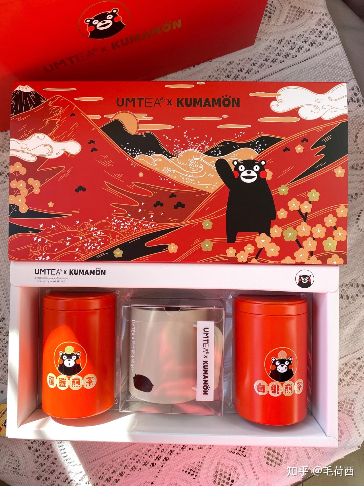 盒子的外表就是精致大红色加日式斑纹,中间的一只熊本熊憨态可掬,用它送礼很有排面。