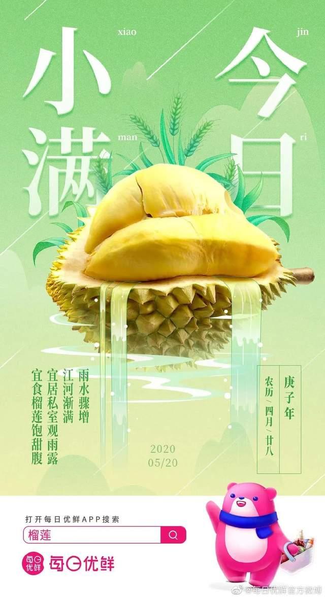 每日优鲜:雨水骤增,江河渐满。宜居私室不雅雨露,宜食榴莲饱甜腹。