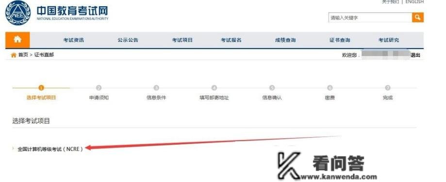 6、登录后,起首点击【申请证书曲邮】,然后选择测验项目。如图所示: