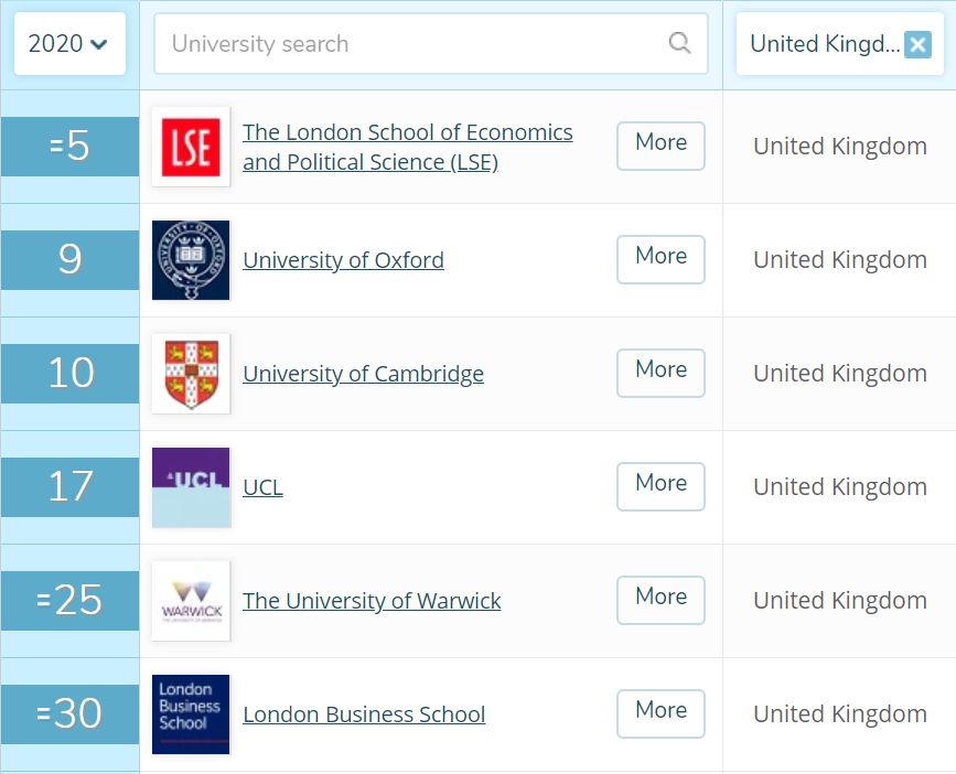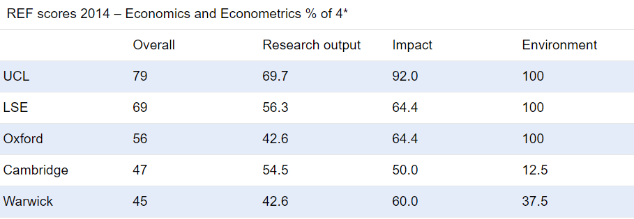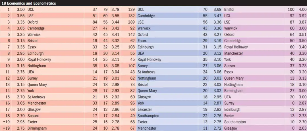 UCL的Econ专业十分强势,REF排名之一,QS排名中仅次于LSE和牛剑,若是同窗在将来有意攻读经济学博士,能够选择UCL Econ做为跳板。