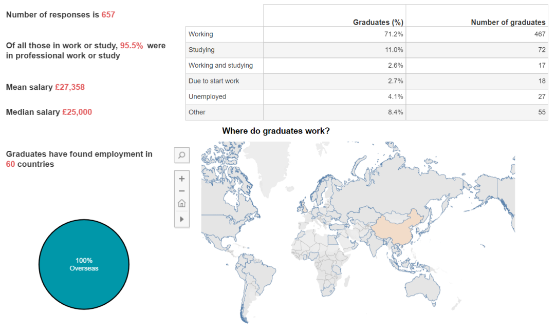 QS Economics & Econometrics大类排名在UCL进修商科硕士的中国籍学生约有23%结业后留在英国工做,76%选择回国开展,均匀薪资程度为两万七千英镑。