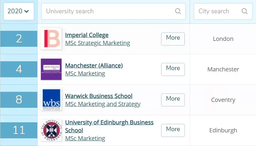 爱大的市场营销硕士(MSc Marketing)在本年的QS排名中表示凸起,排名全英第四,仅次于IC、曼大和华威,对市场营销感兴趣的同窗能够考虑申请那个项目。