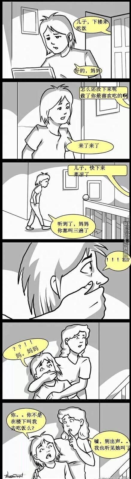 3.❤️儿子生日,爸爸妈妈很高兴,于是帮他拍录像。小孩在床上跳啊,跳啊,突然就摔到地上死了。爸爸妈妈很悲伤。过了几个月,他们拿出其时的录像回放时发现,有一只沾满血的手抓着儿子的头发一上一下,一上一下,最初往地上一丢。