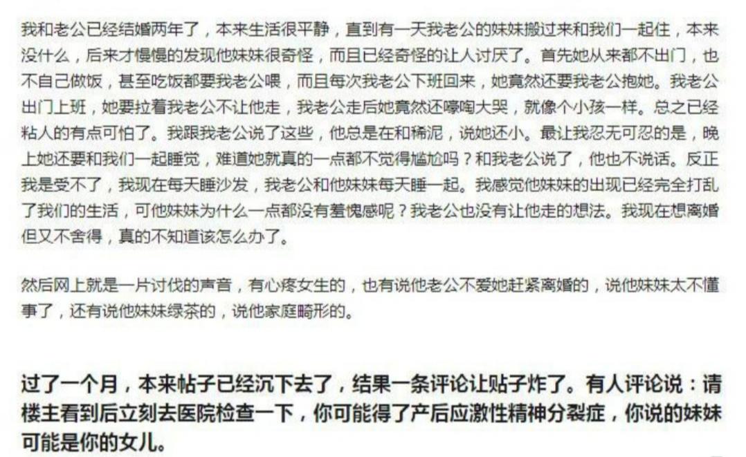 听到那个谜底,爸妈便问姐姐那个小男孩友善么。姐姐说是。不久后,那种行为就停行了,姐姐长大以后也忘记了那件事。