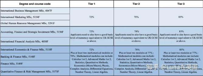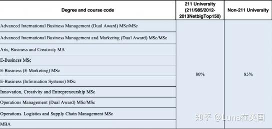 T1只要985入选。商学院大部门课程关于T1的要求是72%。好在,72%分给了一些名校GPA不高的同窗以选择。一般在做英国选校的时候,均分低于80%就会被英国良多高校拒之门外。