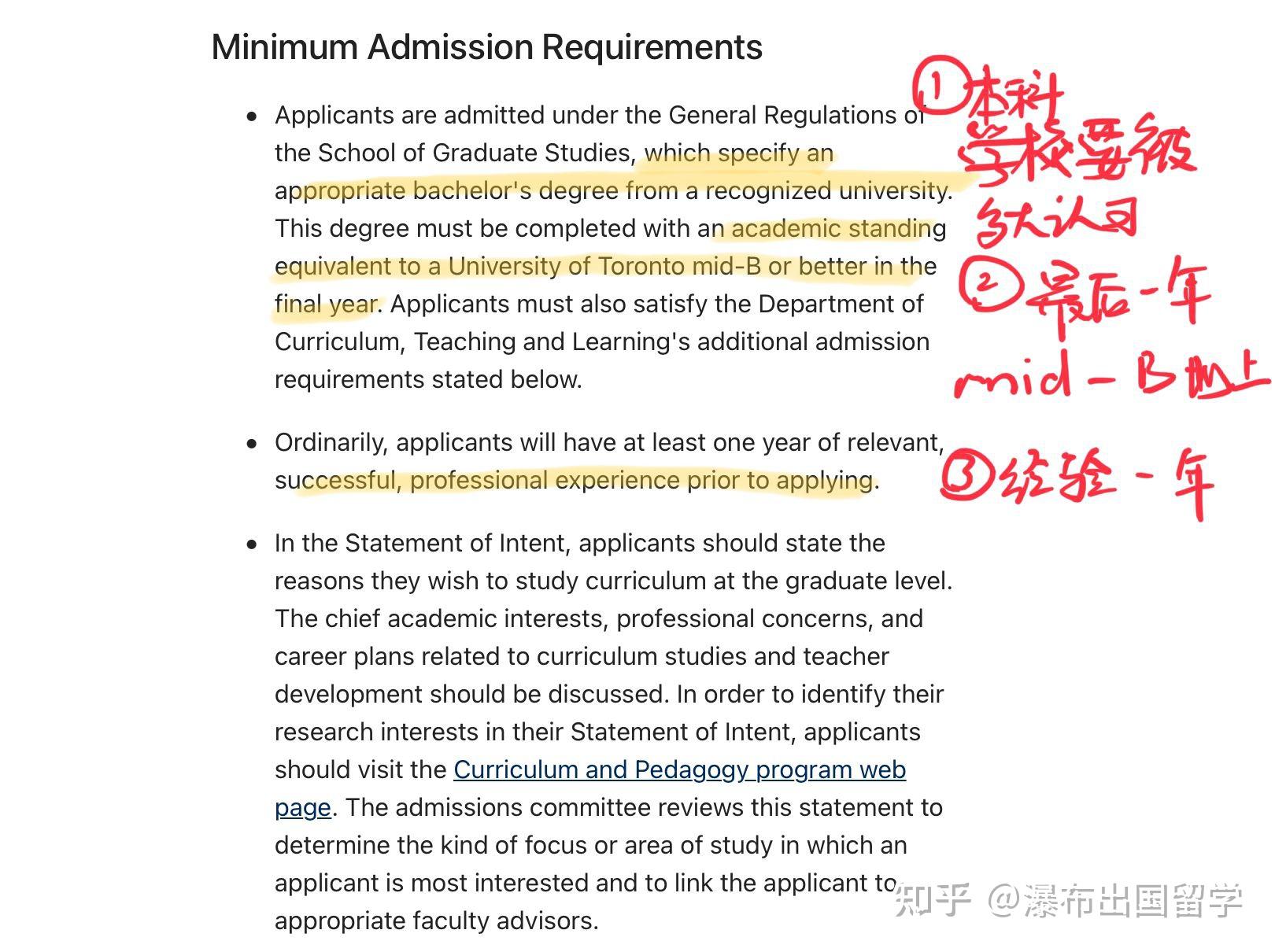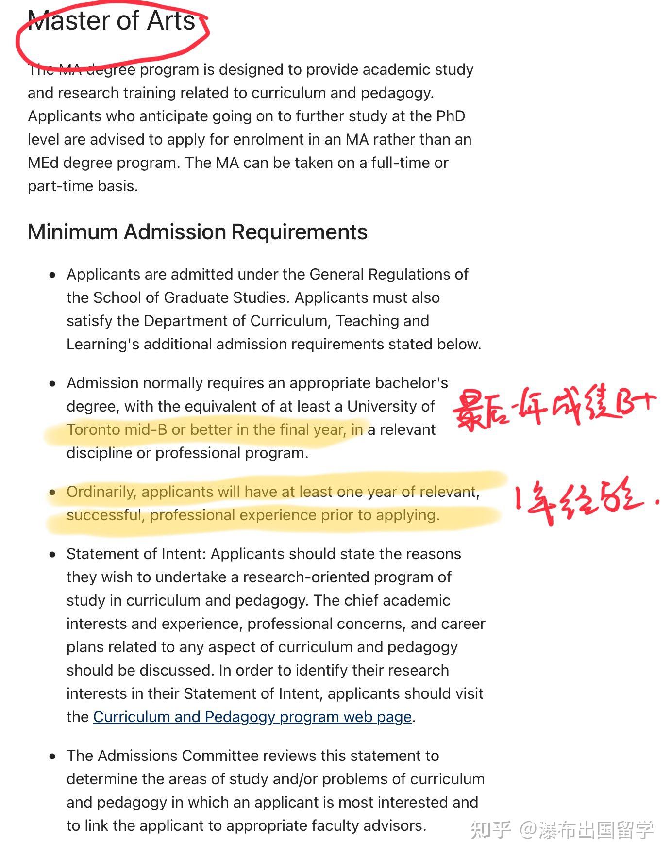 ④教育硕士:本科院校是多伦多大学承认的院校,在本科最初一年Mid-B(80-85摆布),在申请之前,申请者必需有至少一年的相关的,胜利的,专业的经历