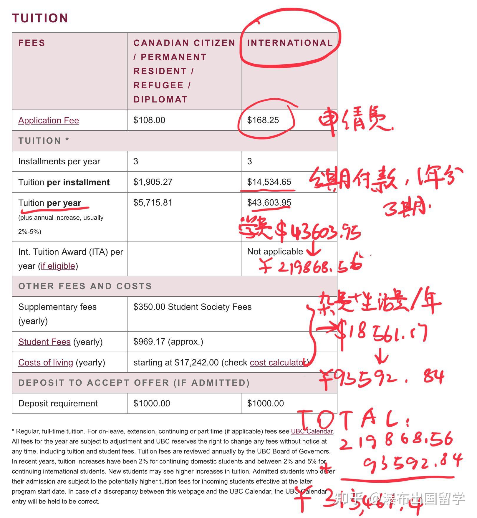 43603.90加币/年(22w人民币/年),总共一年费用31w人民币