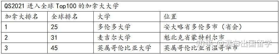 加拿大的大学实的十分不care排名,所以进入全球Top100的大学有三个: