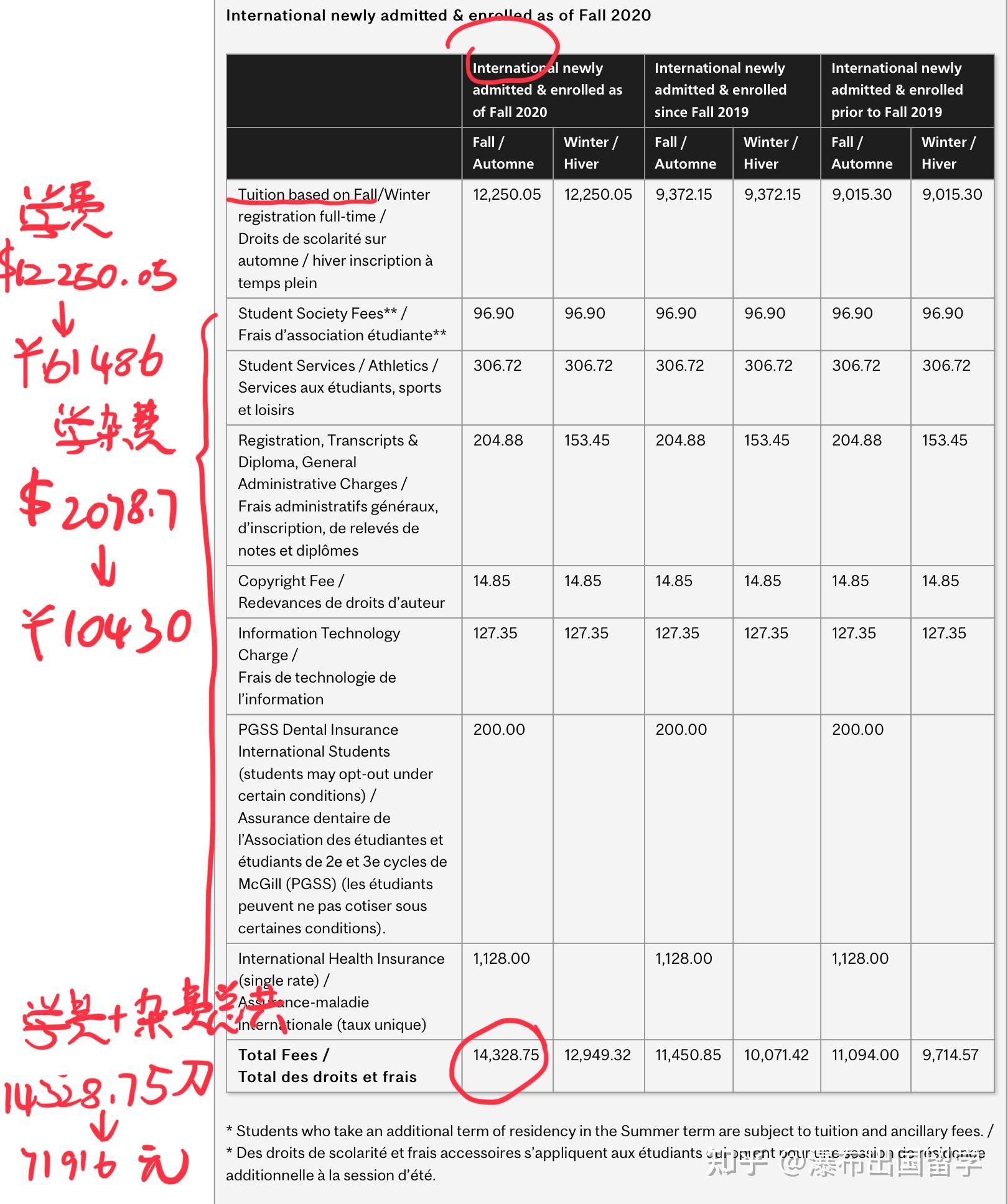 ①膏火:43603.90加币/年,总共一年费用31w人民币