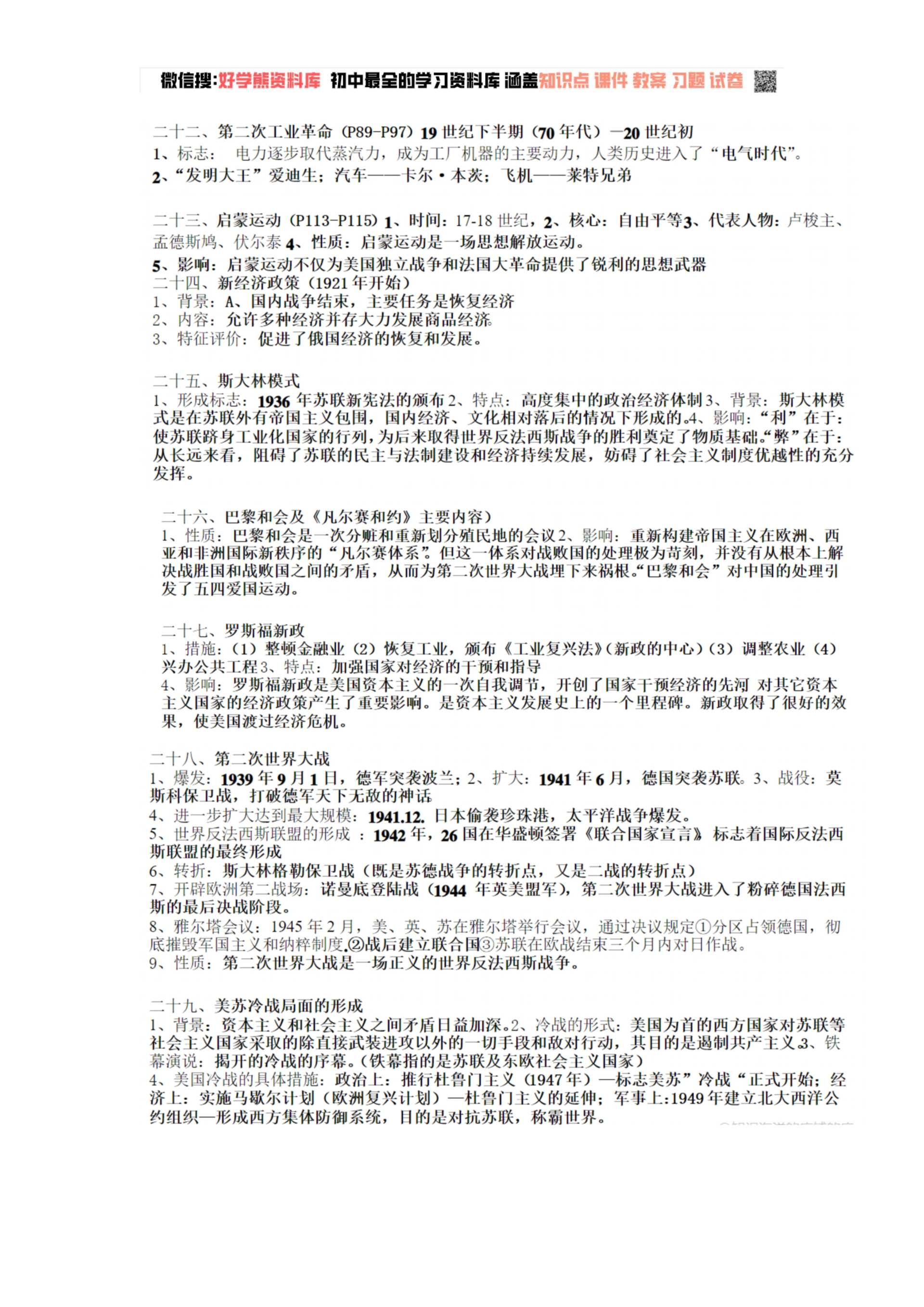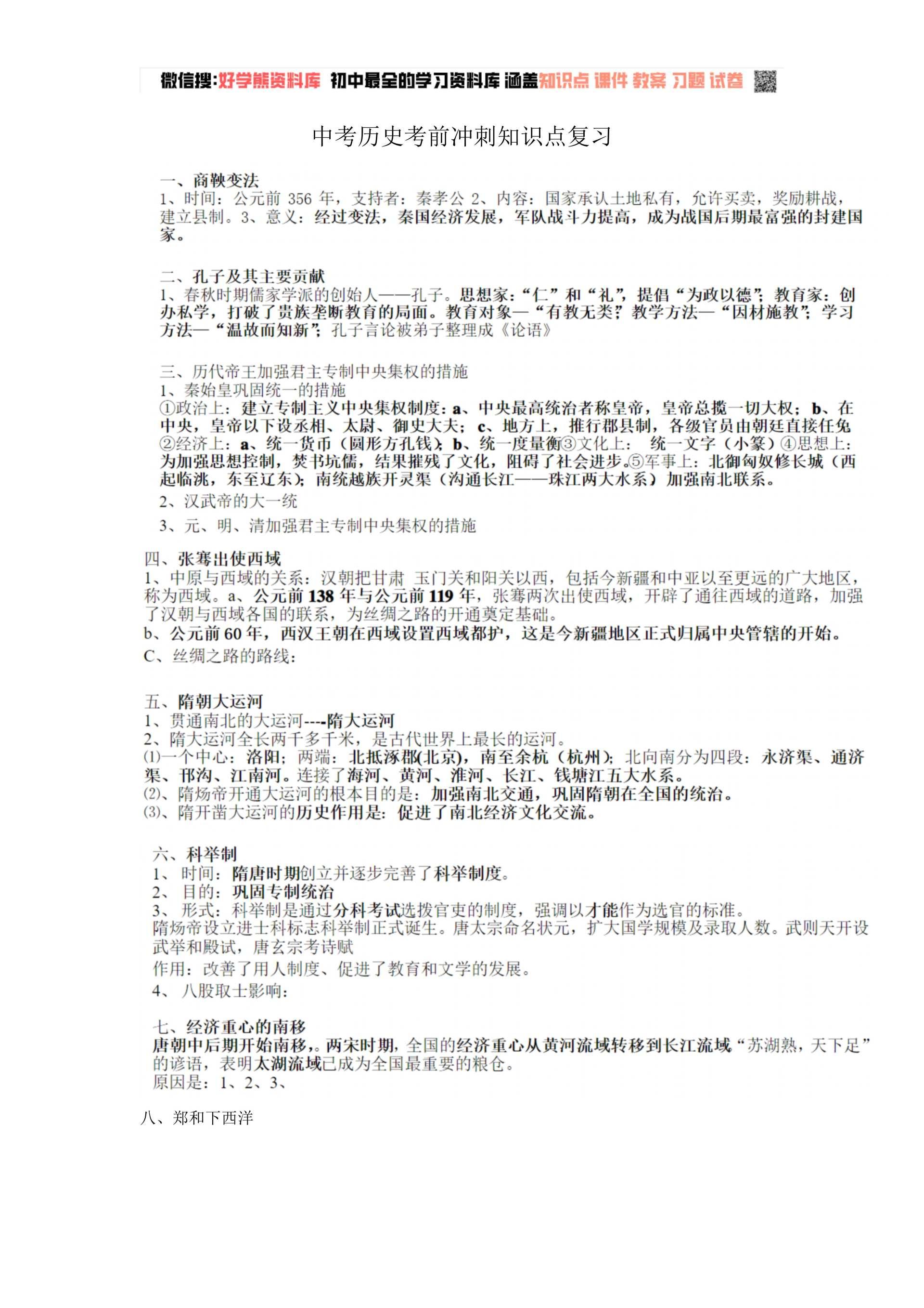 5.中考汗青考前冲刺复习必背重点常识点总结
