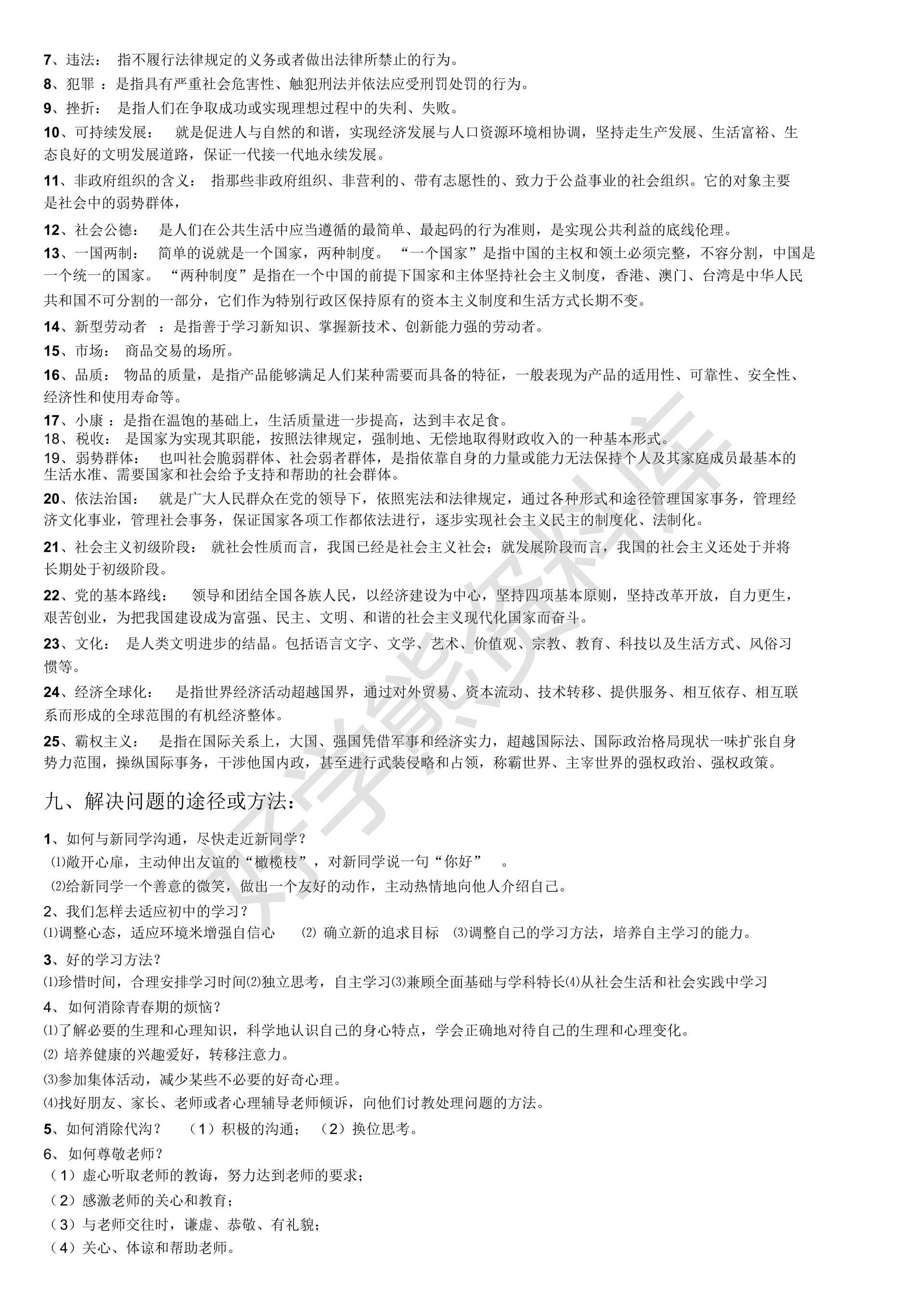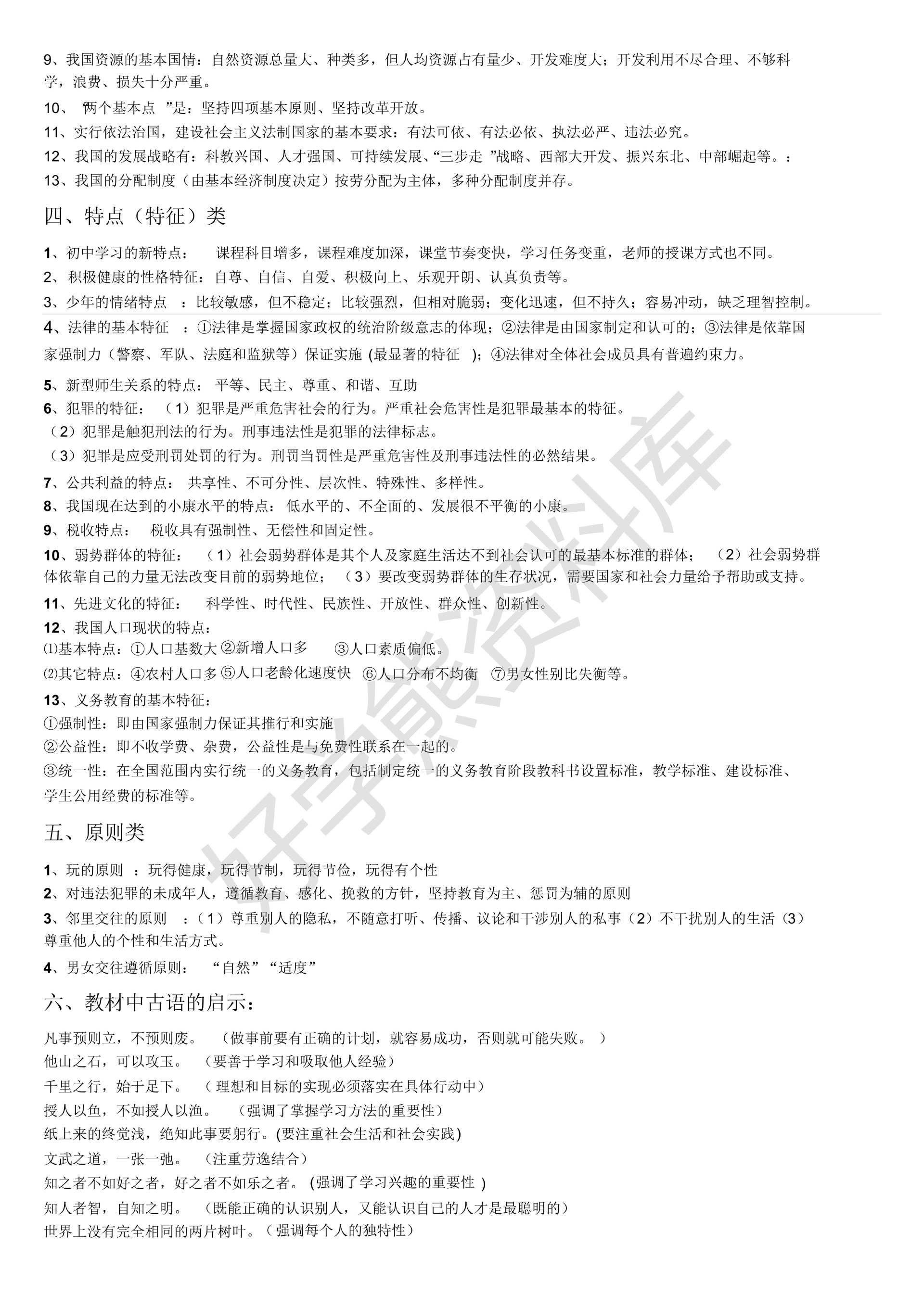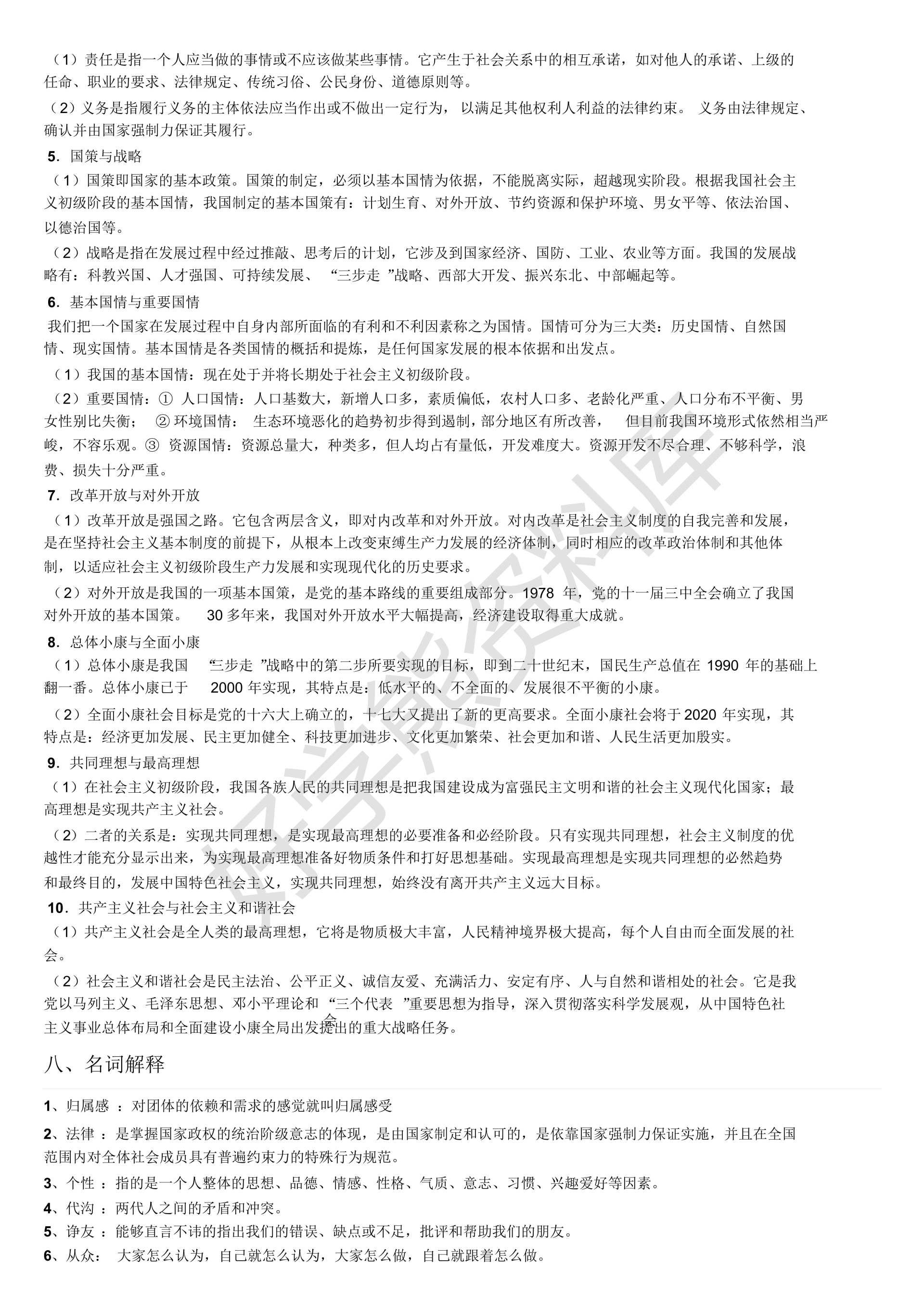 4.中考道德与法治(政治)考前冲刺复习必背重点常识点总结