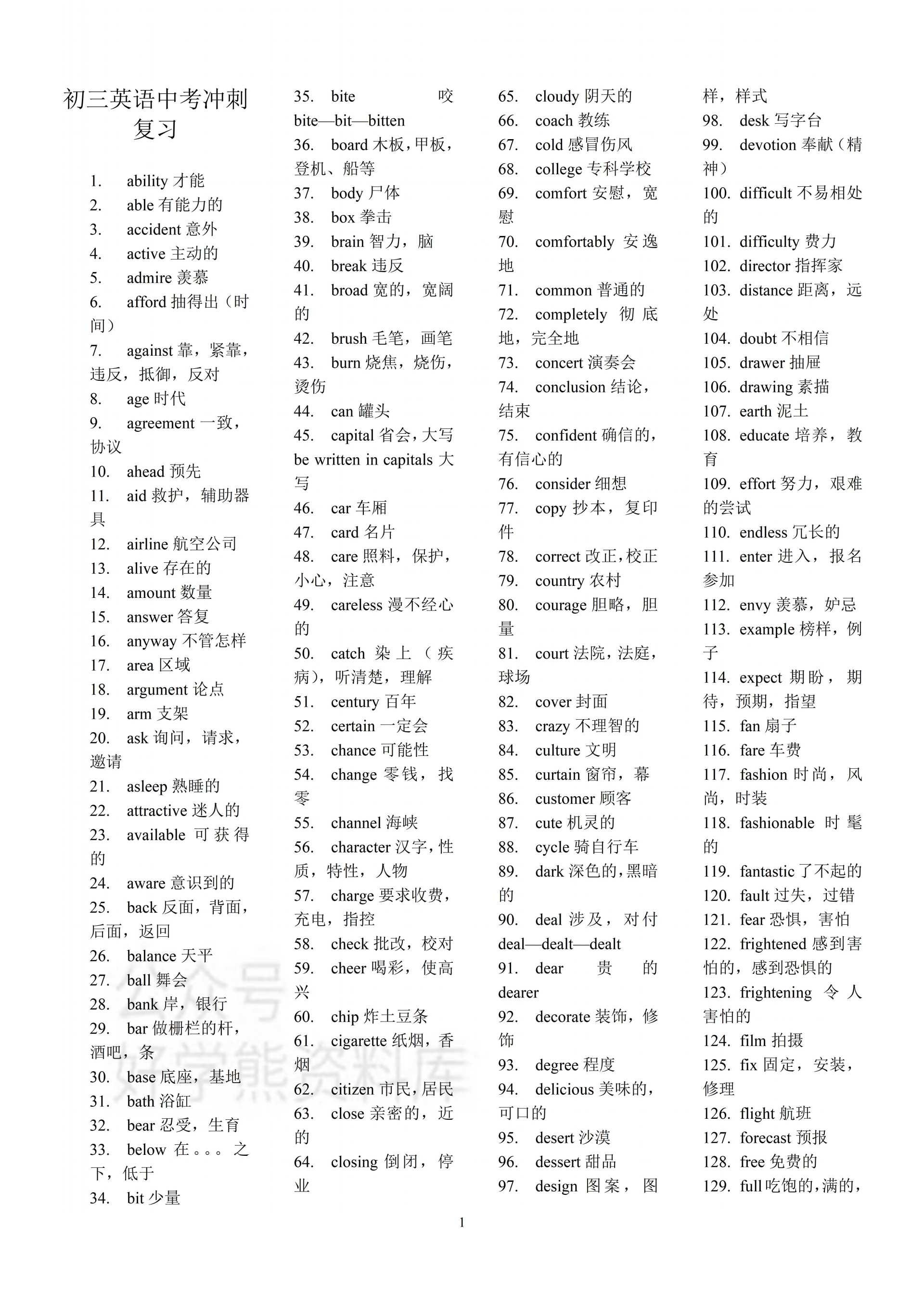 通过教师供给的各科中考考前冲刺复习必背重点常识点总结,希望能帮忙到你。