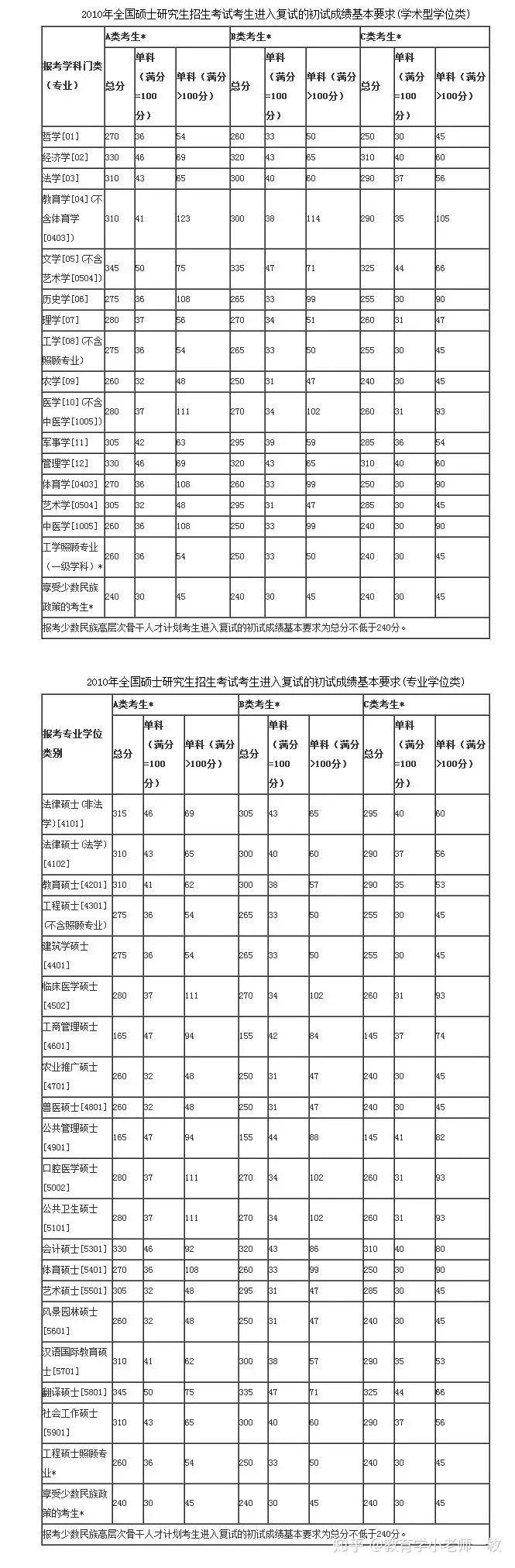 2018年全国硕士研究生测验考生进入复试的初试成就根本要求