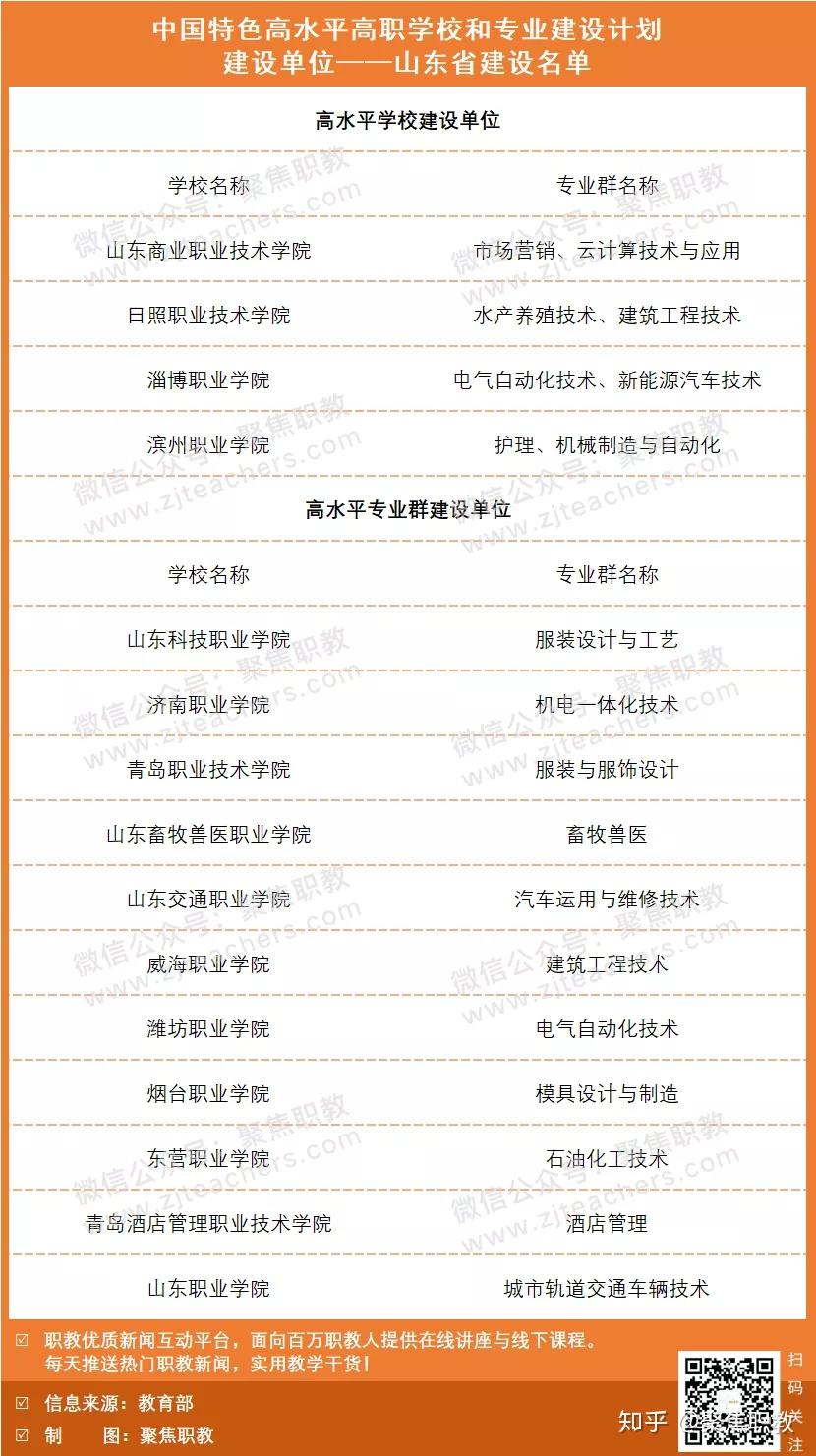 起首,我们看,全国高程度高职学校和高程度专业群——山东省的建立名单。
