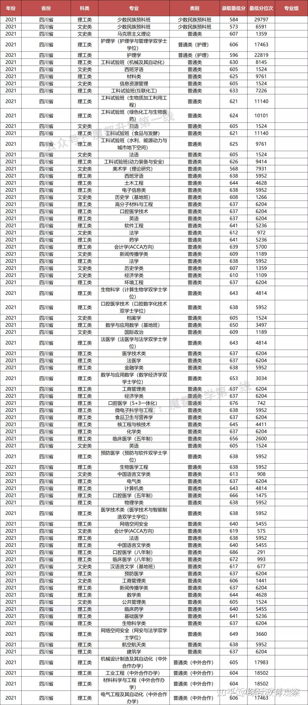 2021年四川大学招生专业及在全国各省招生方案、登科分数线汇总