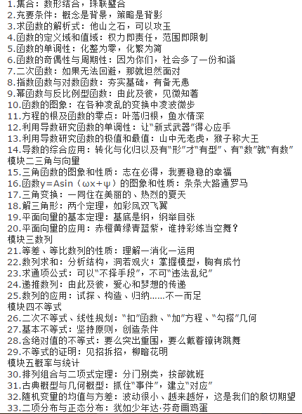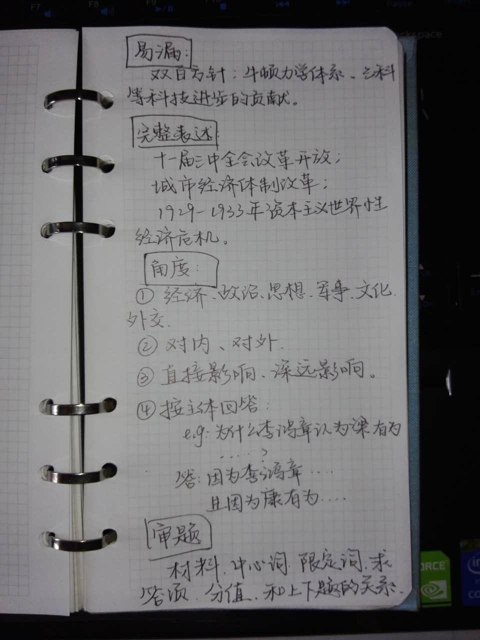 具个例子:语文:起承转合。数学:(看完二轮里面的条记)。汗青:一个时代的政经思,一件工作布景原因开展影响,一个下的汗青事务(如世界市场)。天文:位地气水土生,市场原料燃料交通政策......