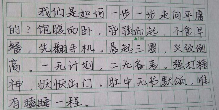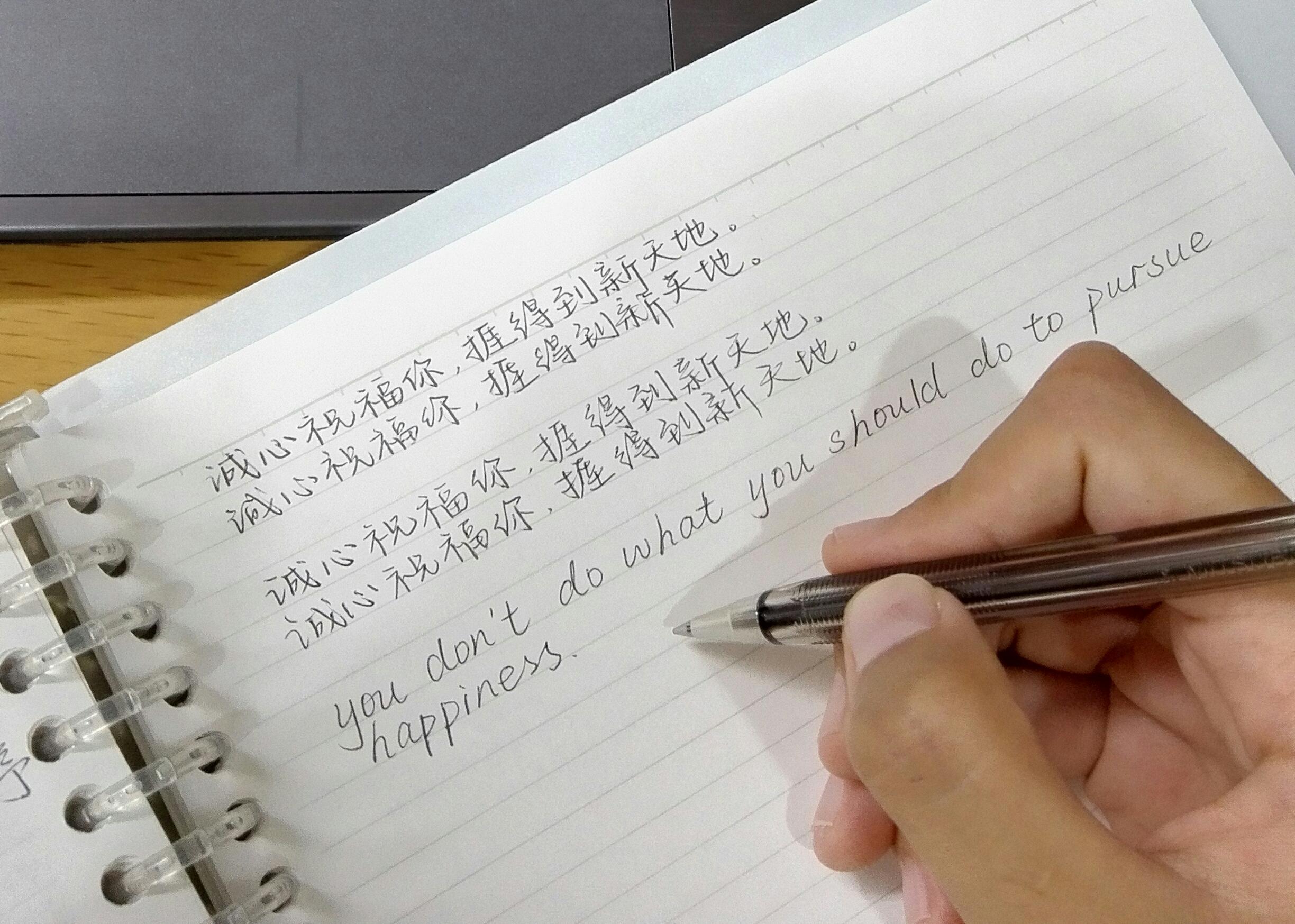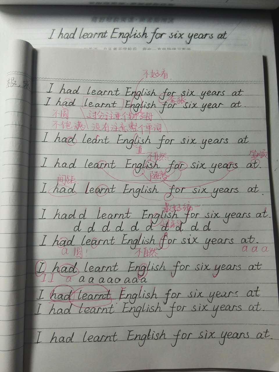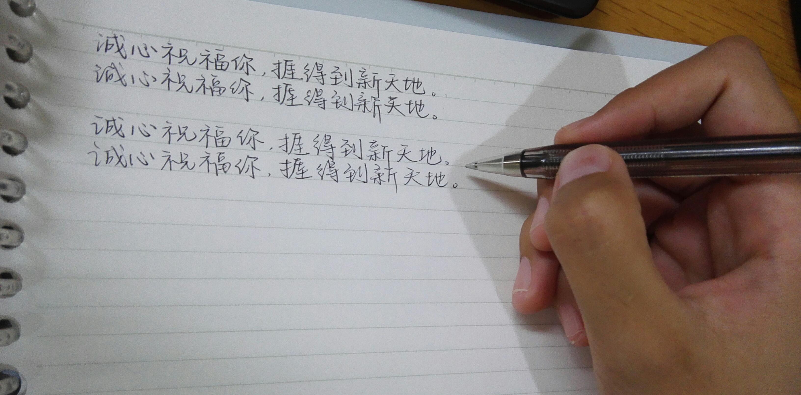 之一行是一般速度写的,第二行是快速写字。准确的握笔姿势写字速度会进步,并且不容易累。