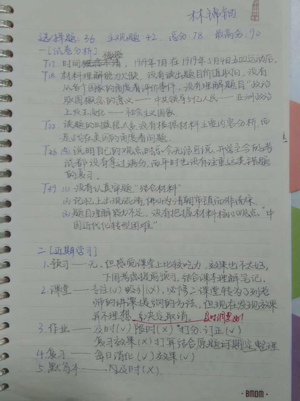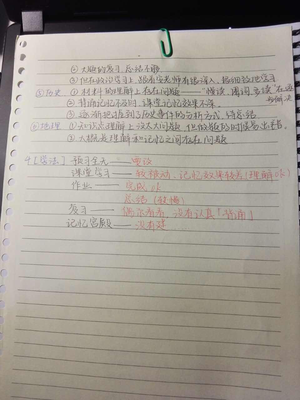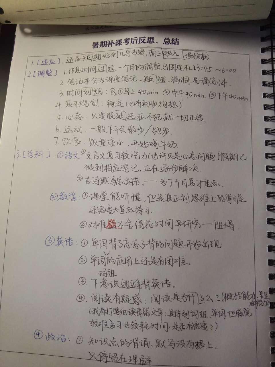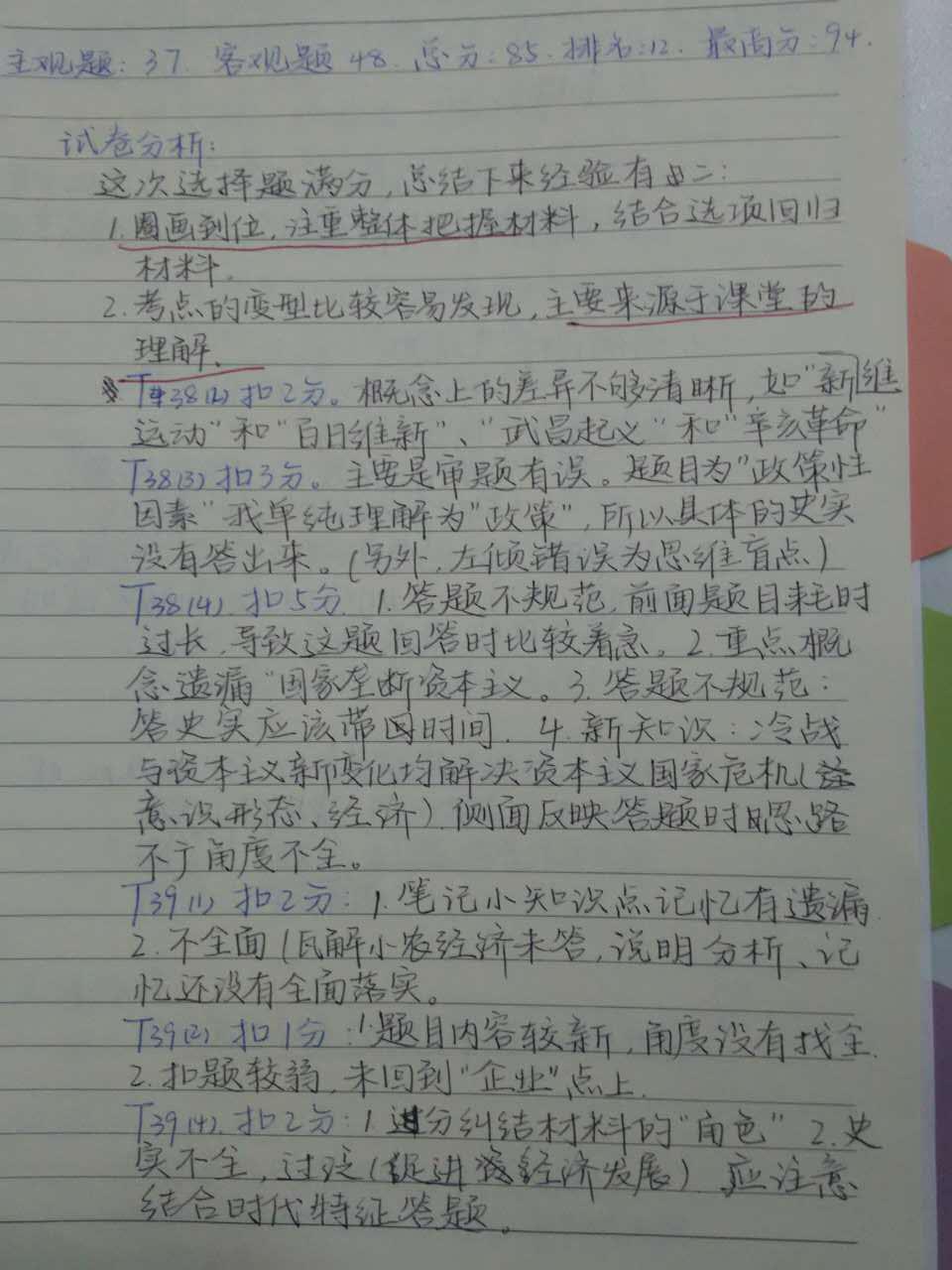1.本身总结的要点或者易错点。(语文的字音字词和做文的构造论据、数学英语政治汗青天文的易错点)