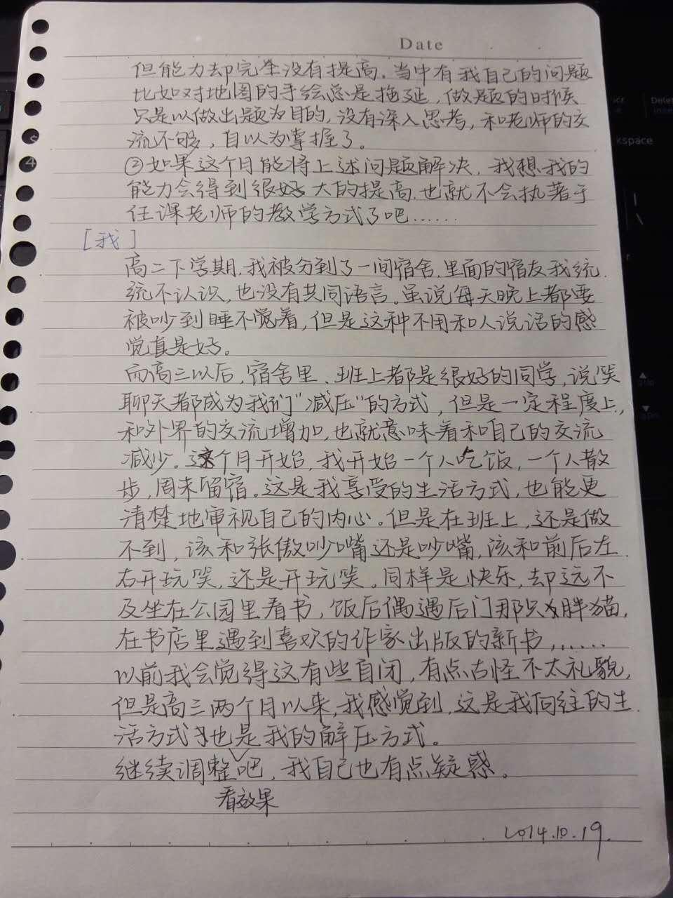 关于我本身来说,高三碰到的更大的困难不在于学业上,而在我本身。我是一个很喜好给本身造定方案而且深思的人,也坚信高考成就=抱负分数×方案完成率。但是问题是,我未必能完全完成本身的方案,即便完成了,我也无法确定它详细的效果。相信各人都有迟延的时候,也试过认为本身掌握的常识点但测验的时候换一个角度出就不会了。不晓得各人在那种时候会有什么反响,我是起头深思并自责,否认本身过去进修那个常识点时的做法,又不晓得要如何到达本身的抱负境界。如今回想起来,我的问题是对本身的要求并没有一个固定的尺度,简而言之我对本身的要求是:本身能做到的更好形态,再+1。事实上那是一个不成能到达的尺度。而在那个时候,我的每一次测验却是越考越好,那无疑是又否认了我对本身的评估。大要是因为那个原因我陷入了将近半年的抑郁形态。