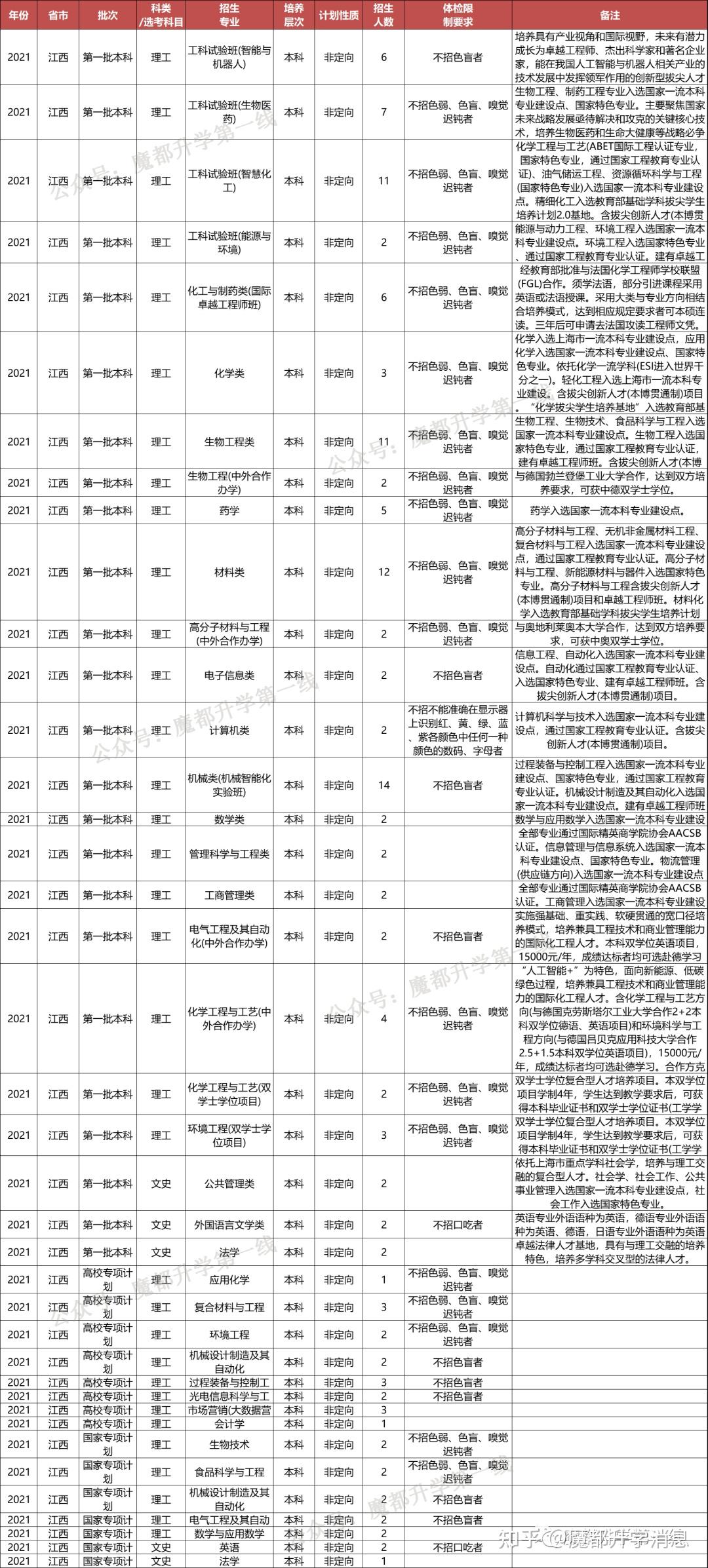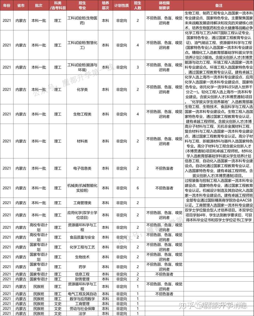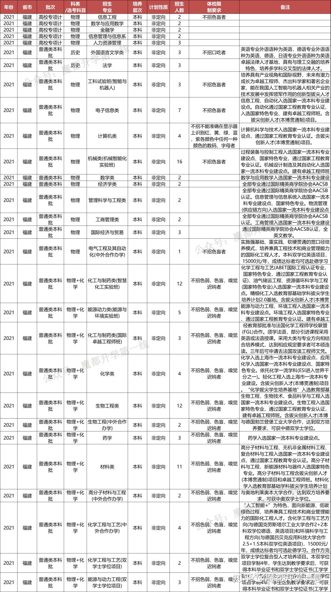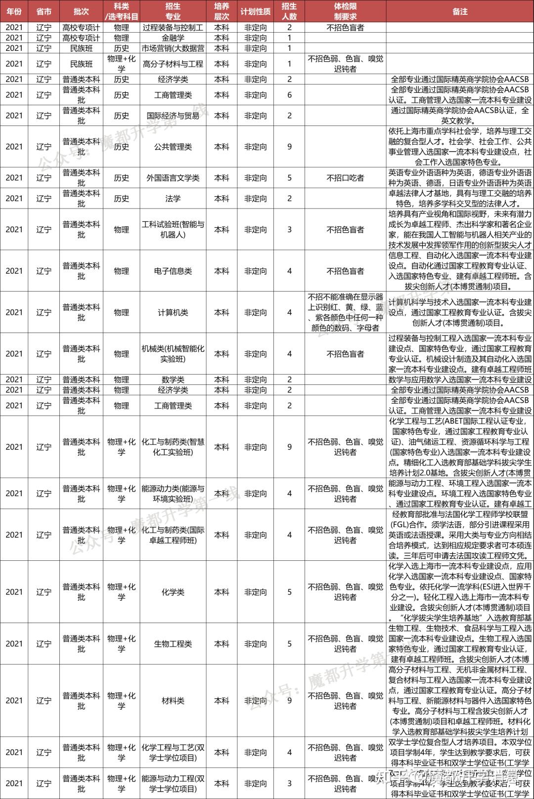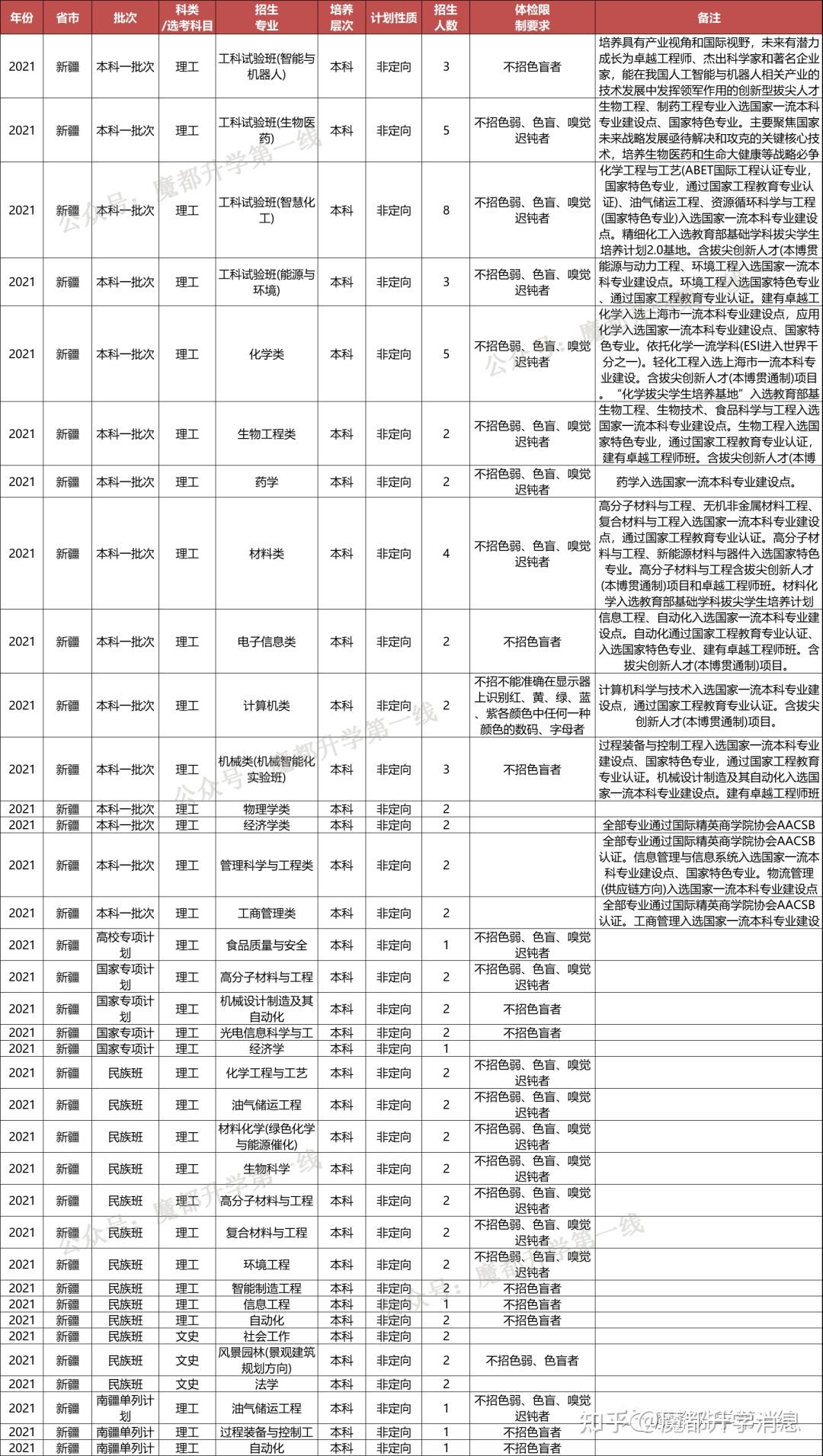华东理工大学2021年招生专业(类)及体检限造、招生科类及选考科目要求