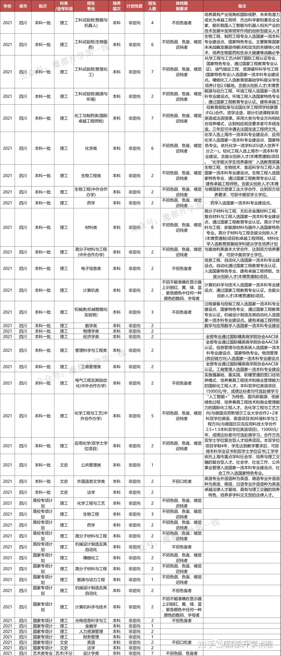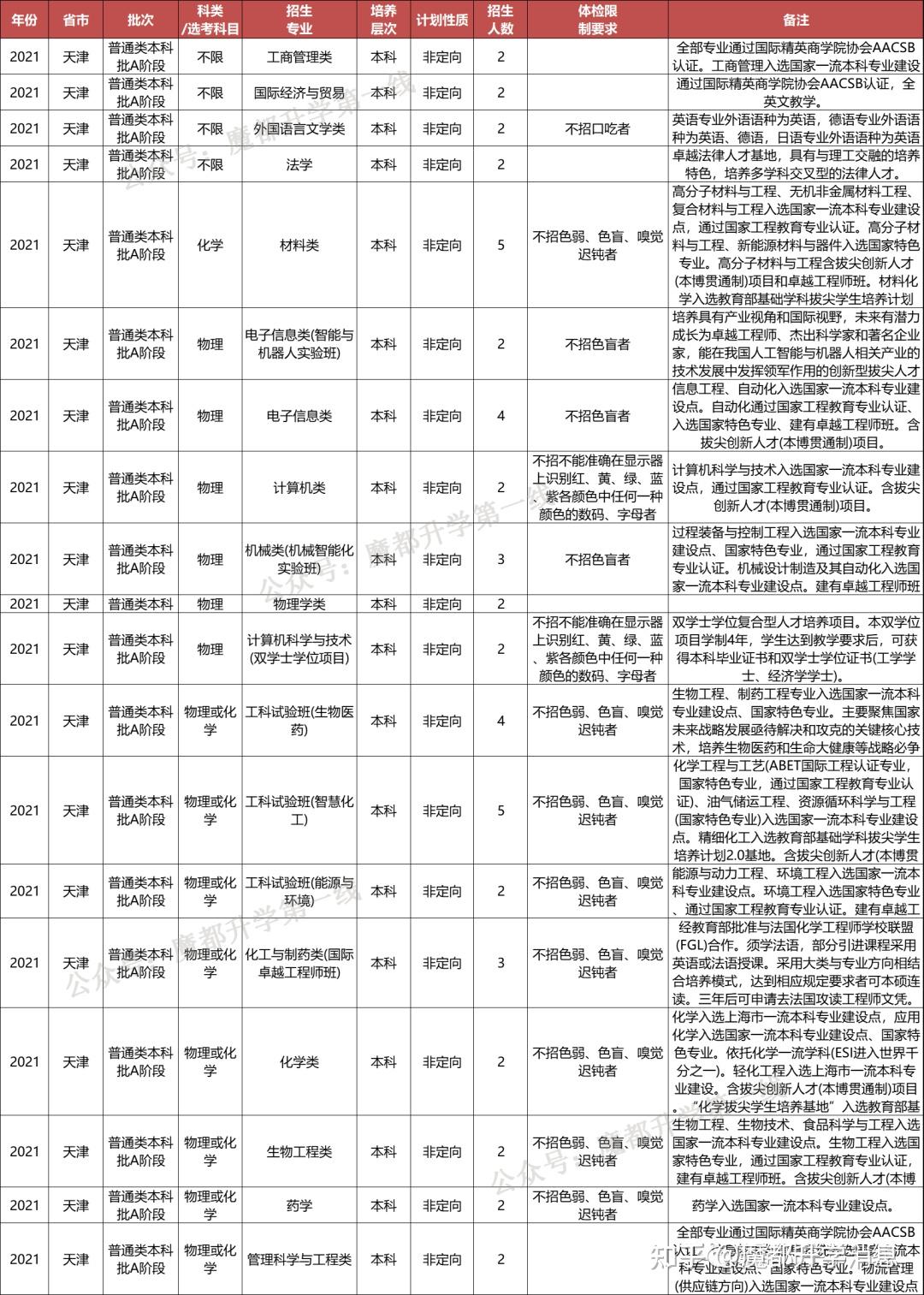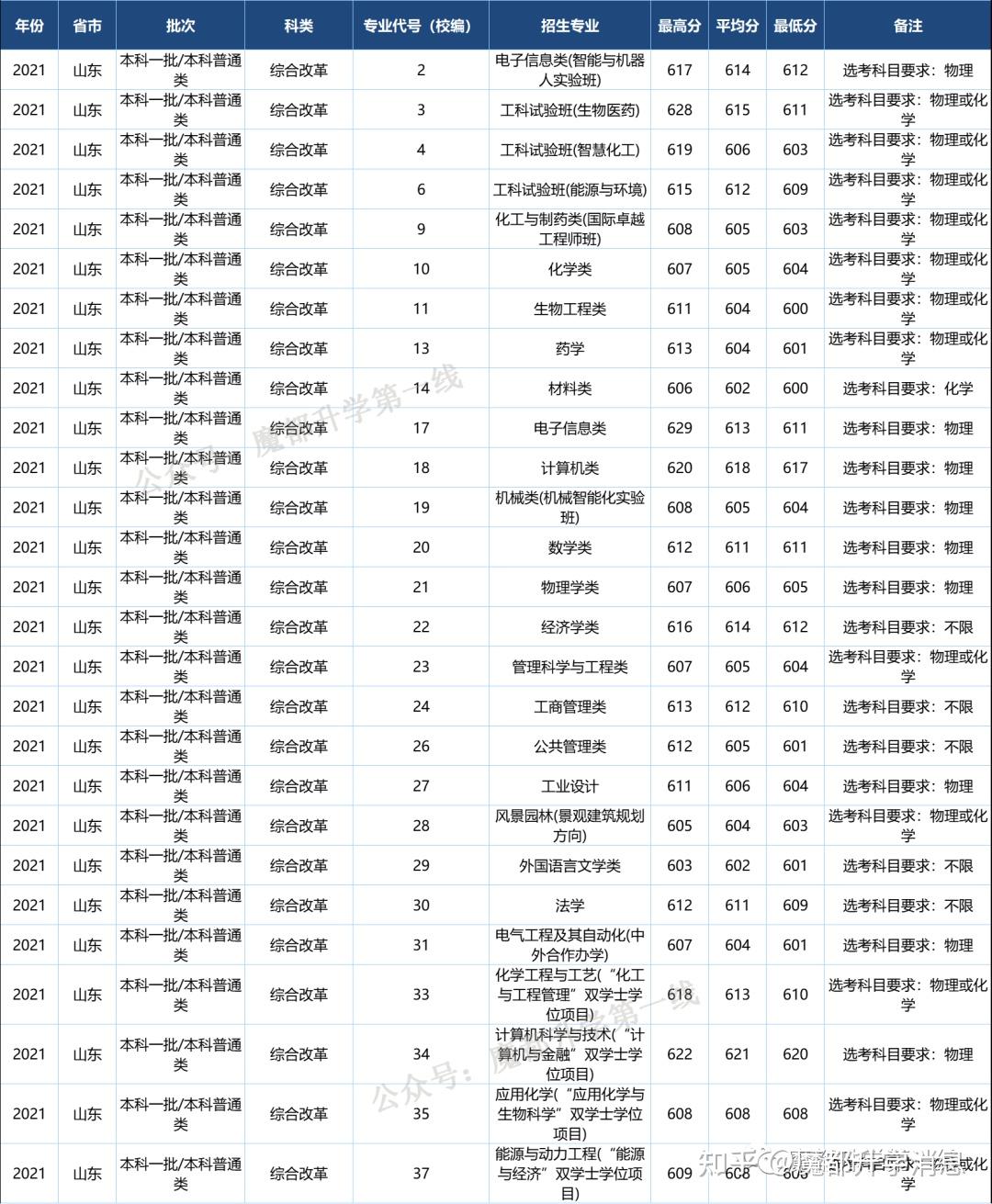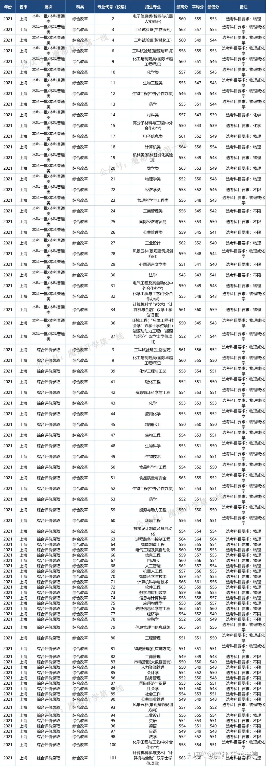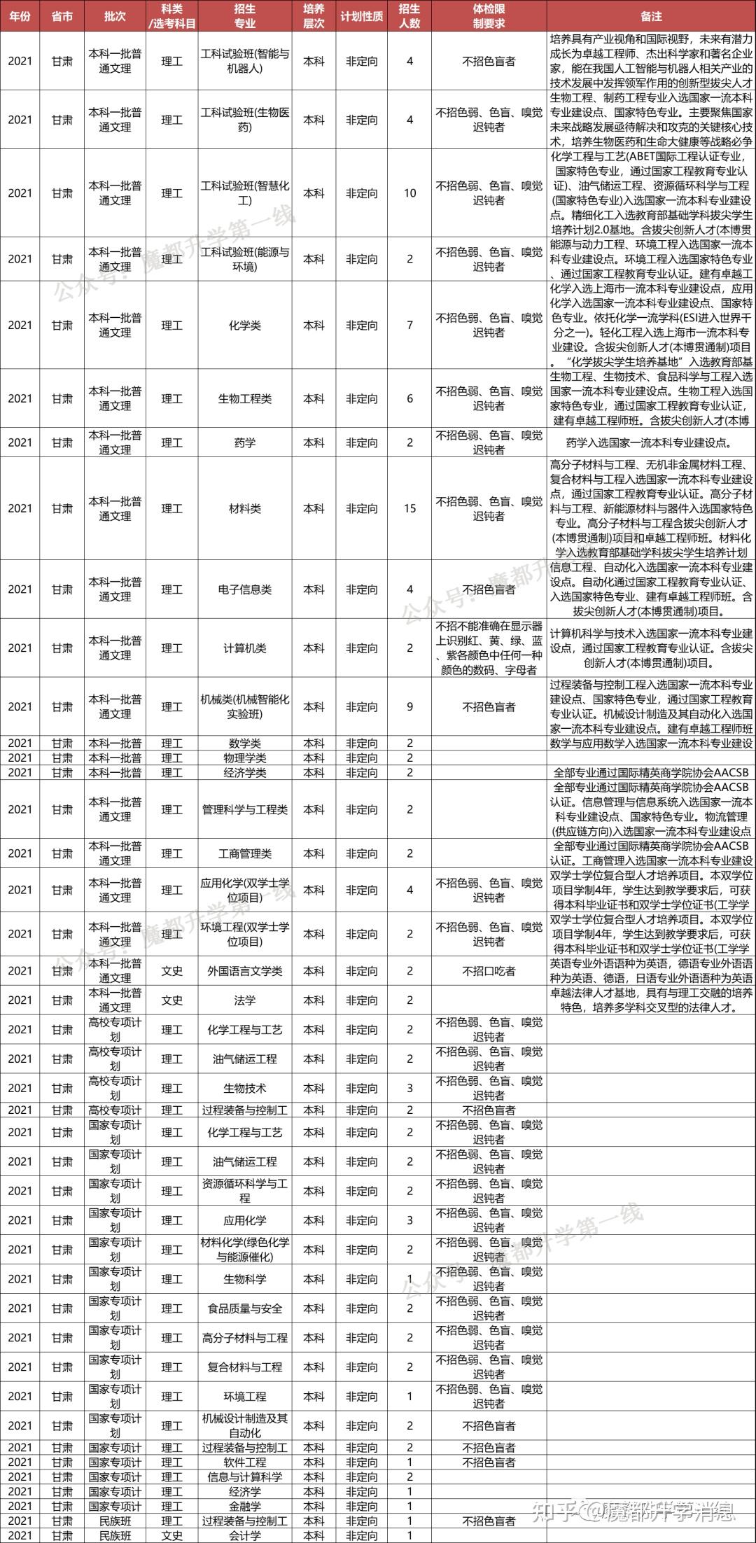 华东理工大学2021年招生专业(类)及体检限造、招生科类及选考科目要求