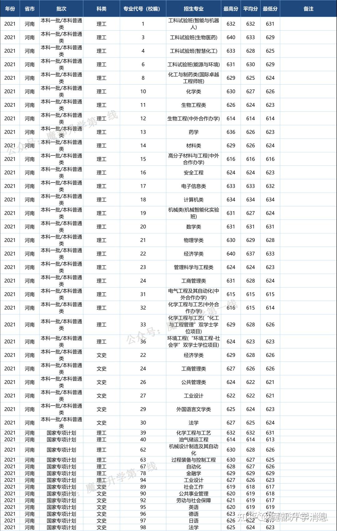 2021华东理工大学招生专业及在全国各省招生方案、登科分数线汇总