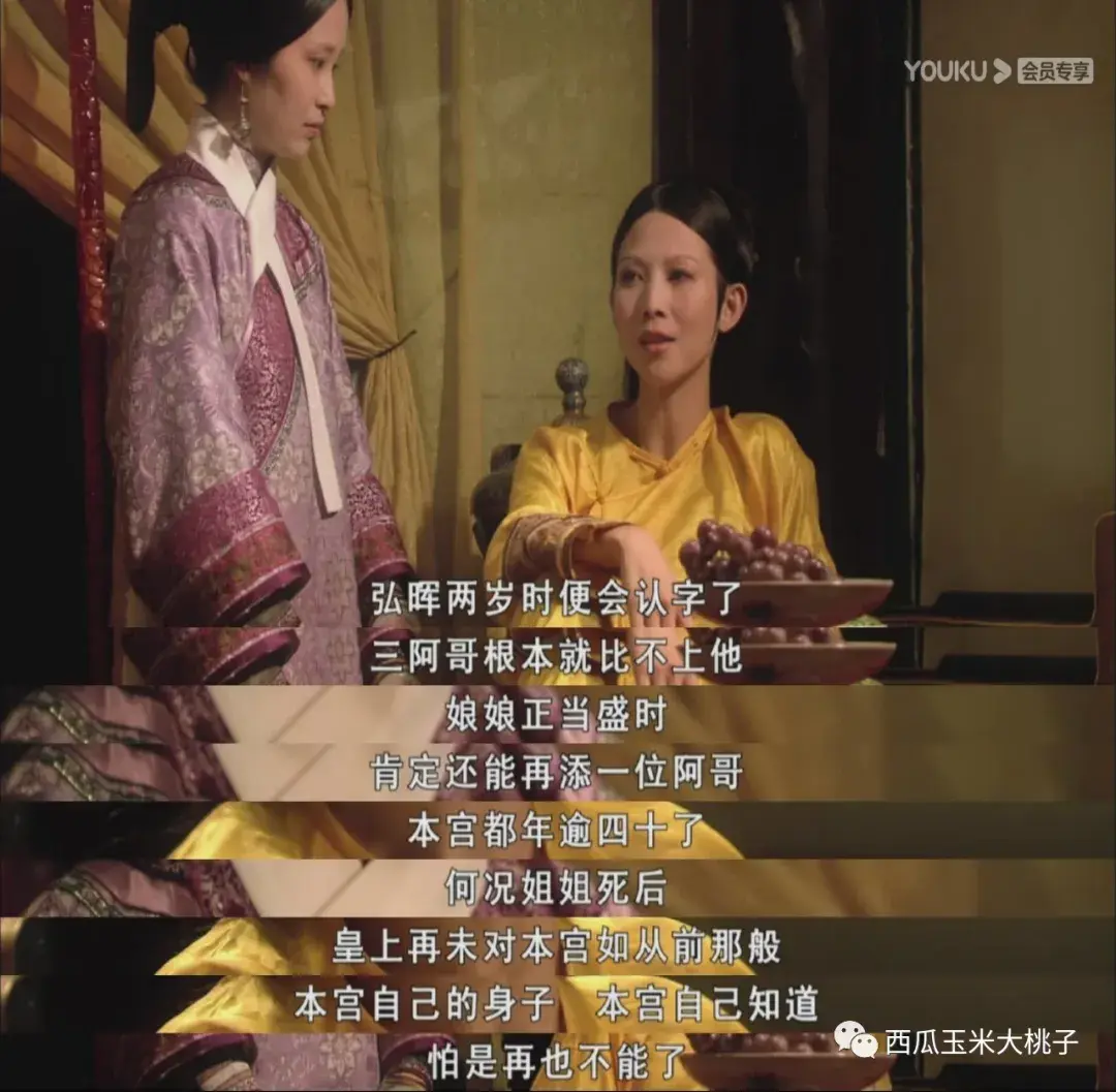 记不记得皇后给安陵容催孕的药时,说那个药方灵验无比。既然说它“灵验无比”,应该是尝试过的。而皇后只生过一个孩子。或许是皇后刚入府时,皇帝说生下儿子就能封爵正福晋,而其时府中已经有了将门身世的端妃,皇后急于生子,就用了催孕药方。所以大阿哥体量不可,很小就夭折了,而皇后也被催孕药伤了身,再也生不出来了。不无事理!