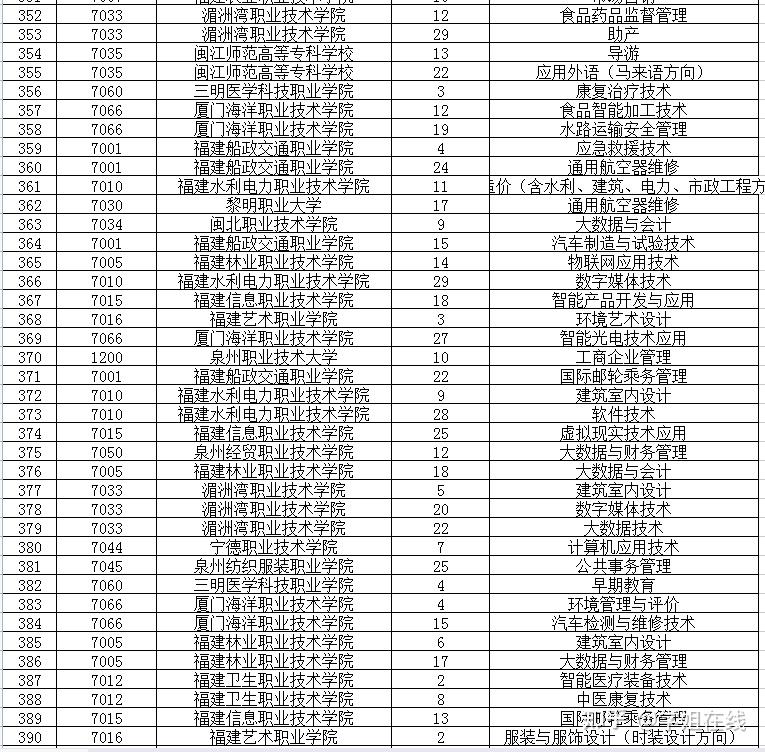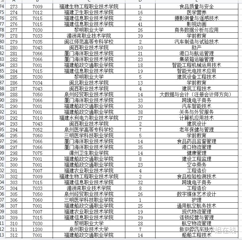 1、下表中呈现了部门本科大学,是因为有些本科大学既有本科专业招生,也有专科专业招生。