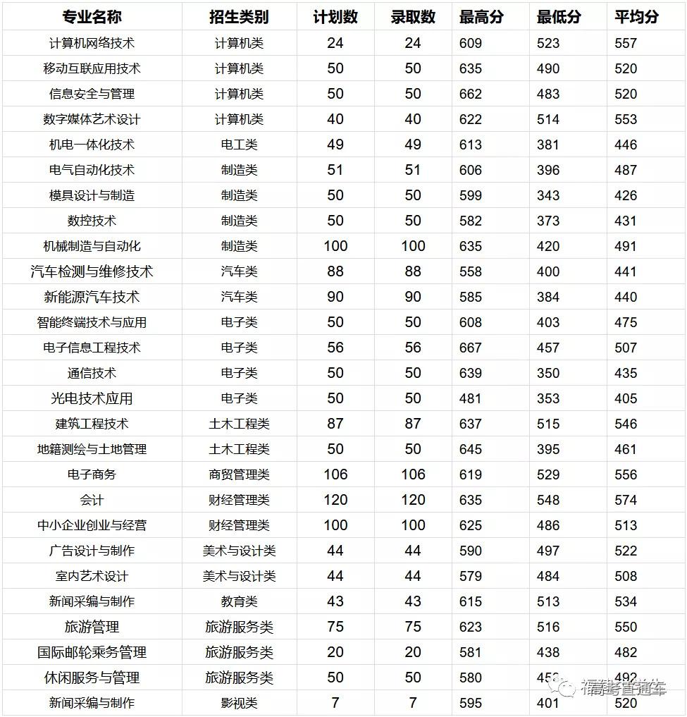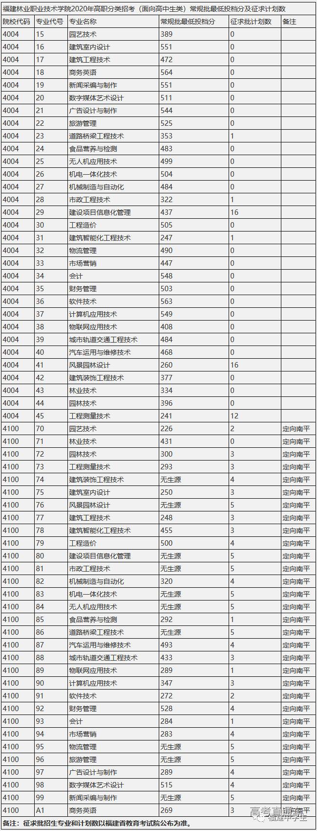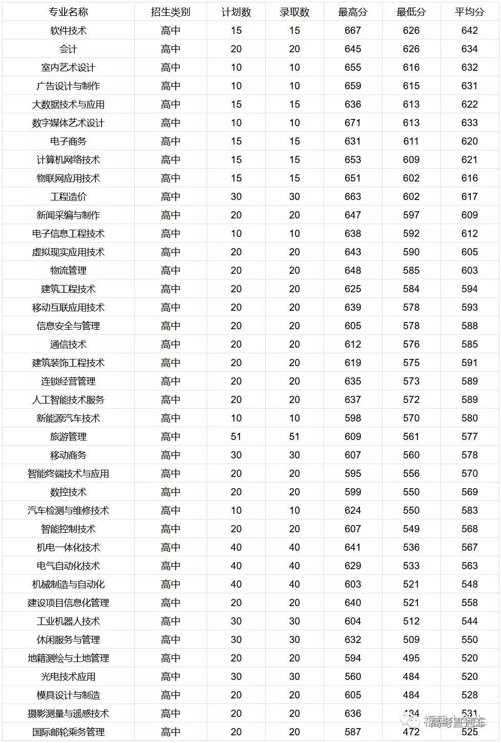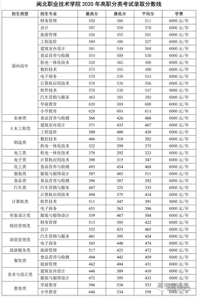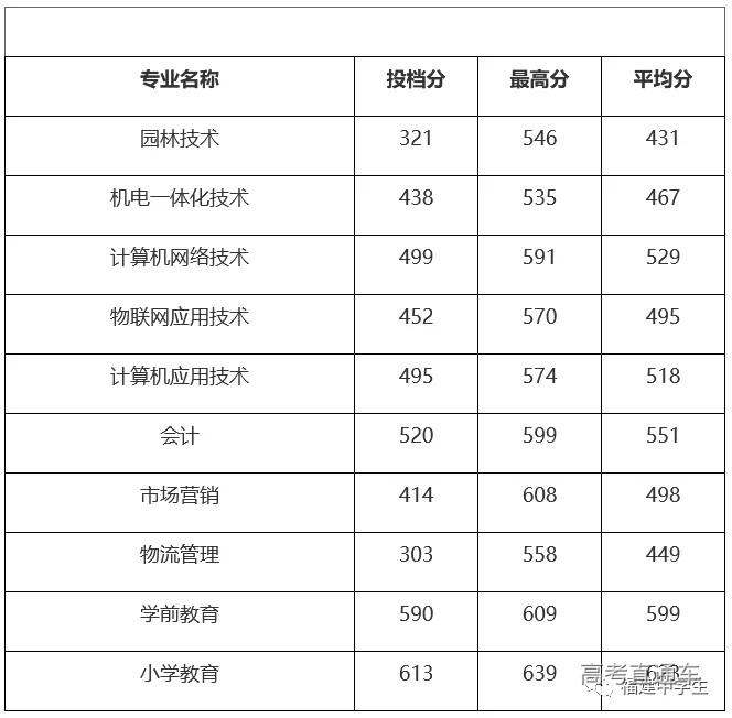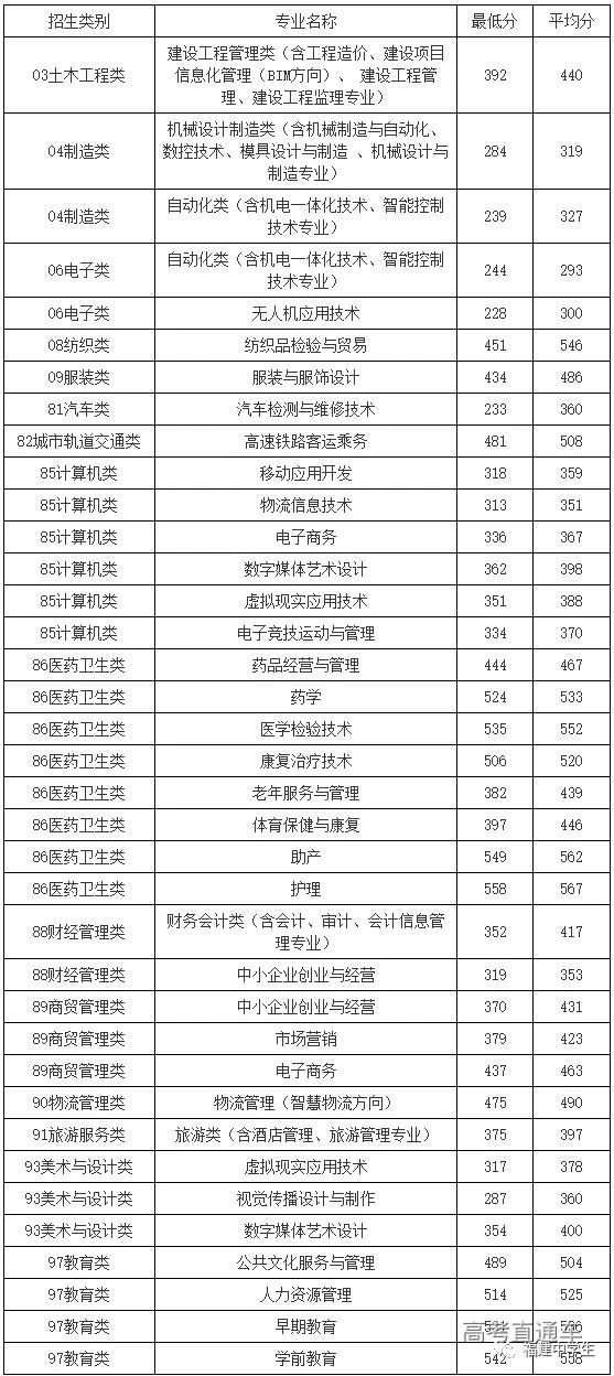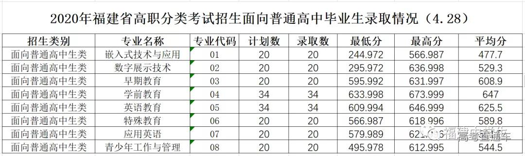 填意愿参考!福建多所院校公布2020高职招考各专业登科分数线!