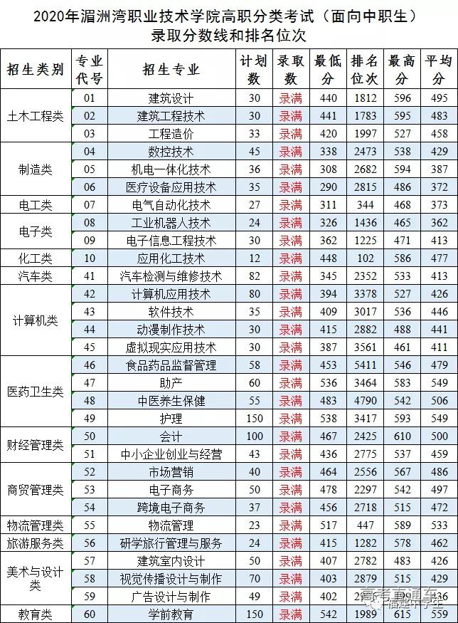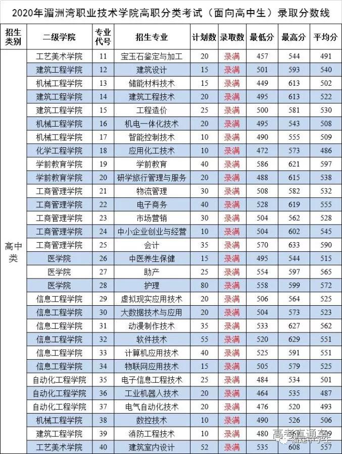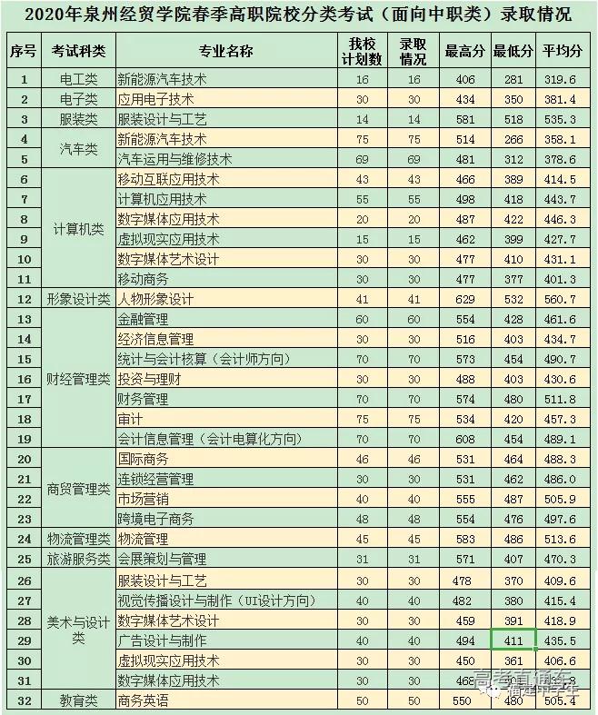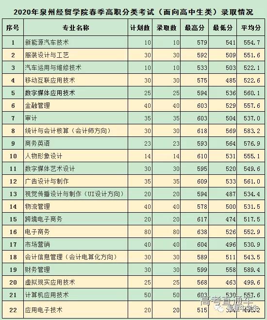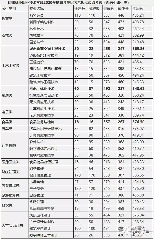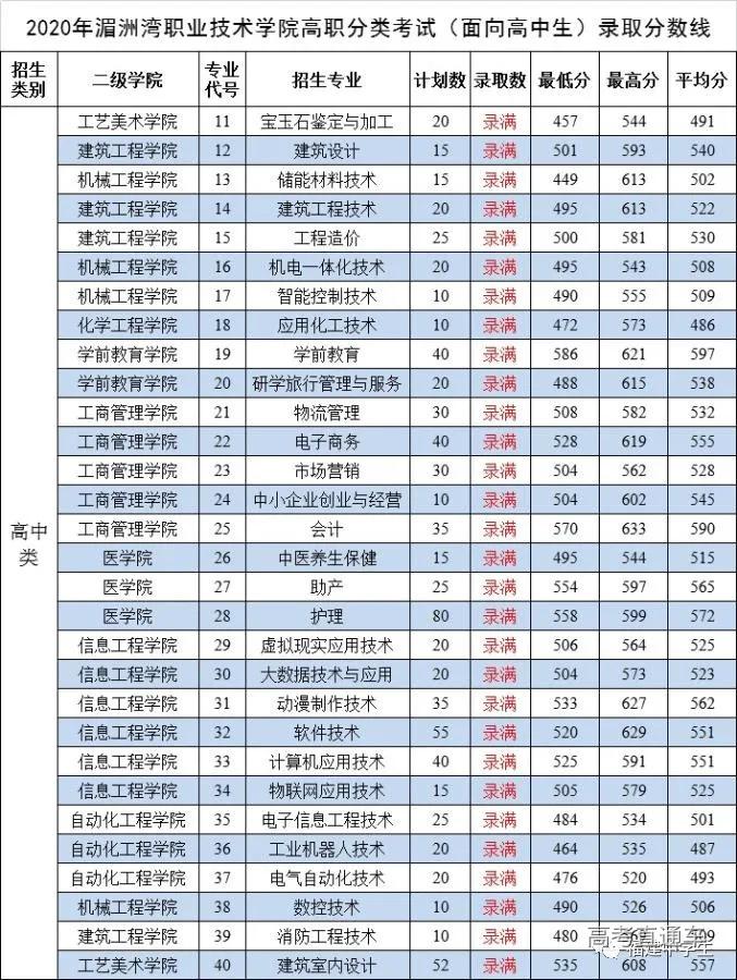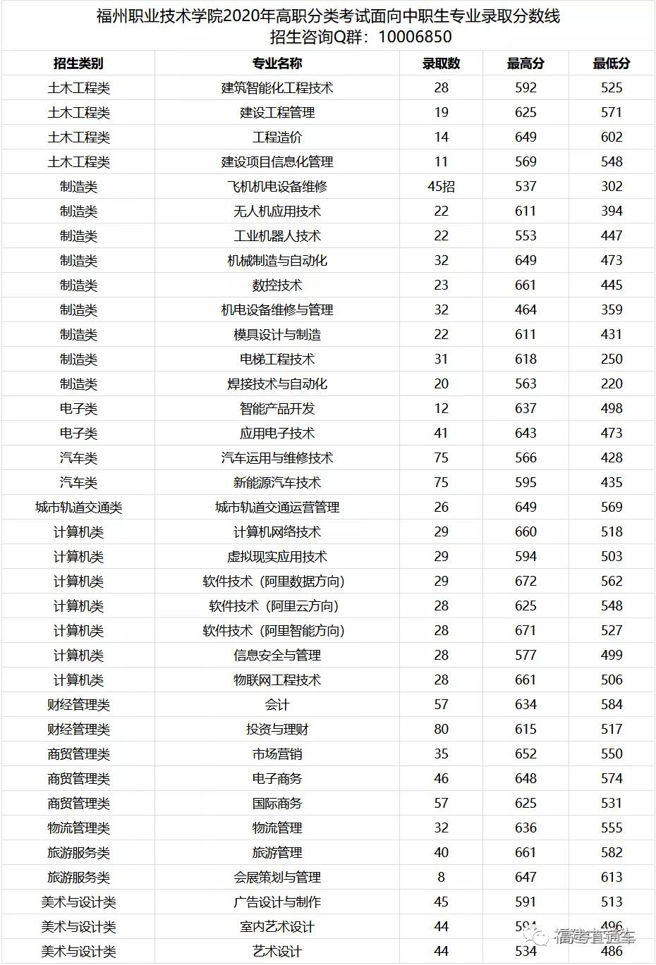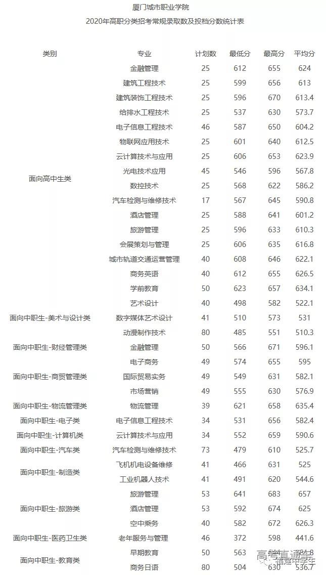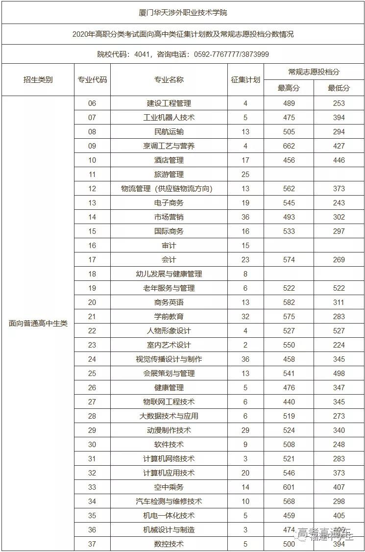 填意愿参考!福建多所院校公布2020高职招考各专业登科分数线!