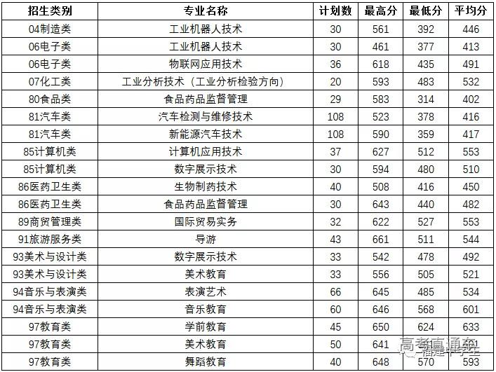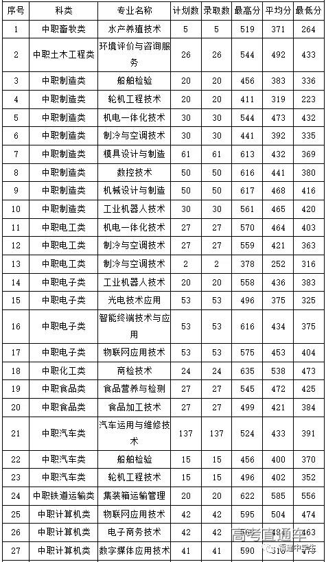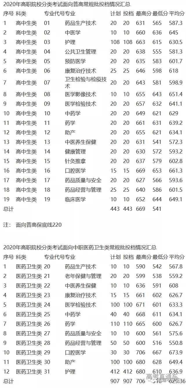 起首,我们先来看看2020高职分类招考的登科分数线。