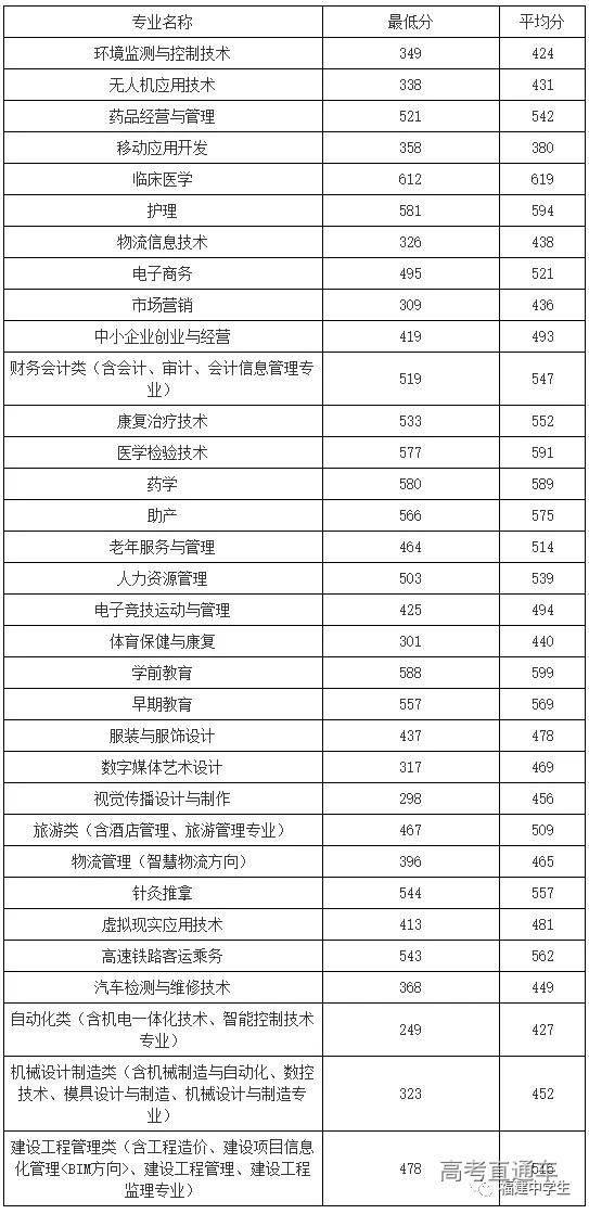 我校2020年高职分类招考面向普高考生招生登科分数线