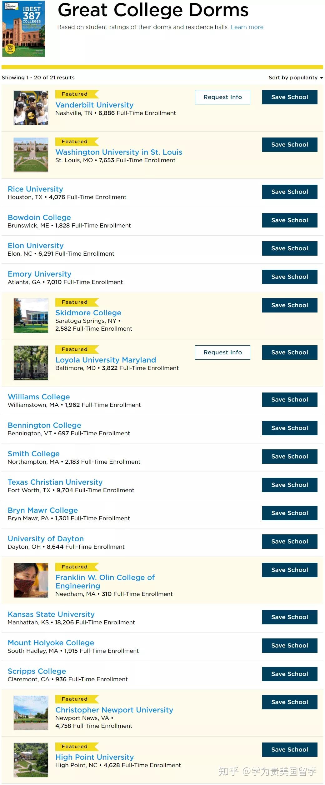 范德堡大学圣路易斯华盛顿大学莱斯大学鲍登学院依隆大学埃默里大学斯基德莫尔学院洛约拉马里兰大学威廉姆斯学院本宁顿学院史姑娘学院德州基督教大学布林茅尔学院戴顿大学富兰克林工程学院堪萨斯州立大学曼荷莲女子学院斯克利普斯学院克里斯托弗纽波特大学海波特大学存眷就读体验的同窗,《普林斯顿评论》2022版的院校排名蛮值得参考。