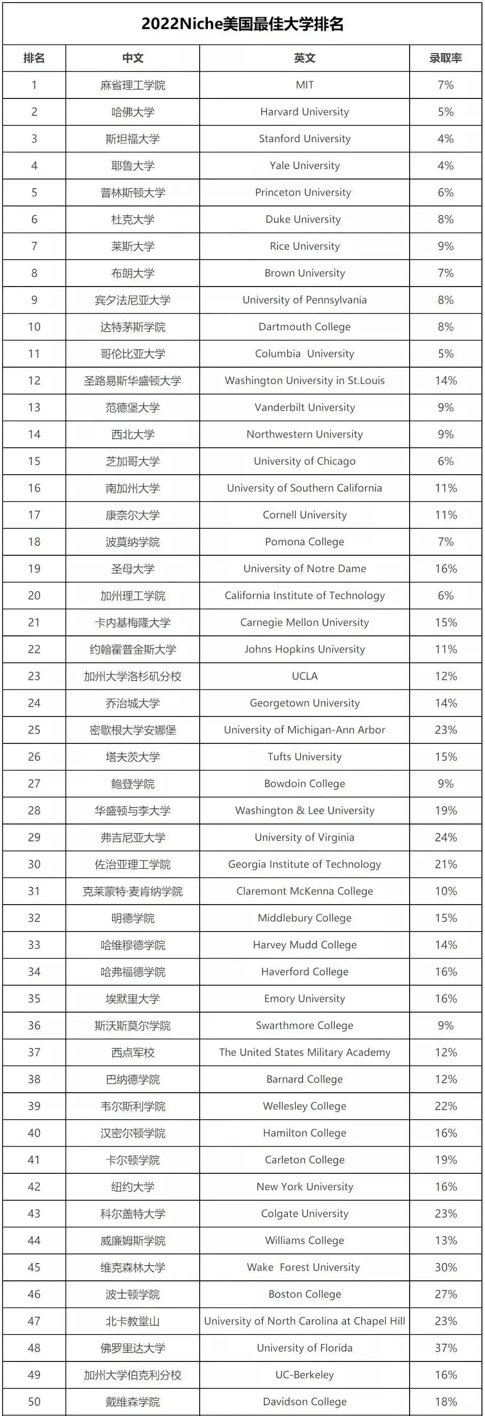 同窗们在选校阶段,除了存眷大学的权势巨子世界排名和院校官网介绍,还要记得去存眷一些学长学姐们关于教学量量和校园生活等方面的“实在评价”。正好,以数十万学生实在评论做为参考根据的美国院校版“群众点评”——Niche 比来公布了《2022美国更佳大学排名》。